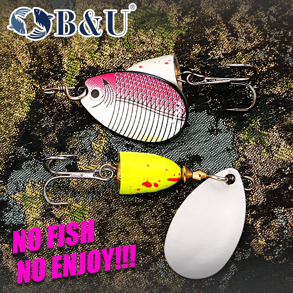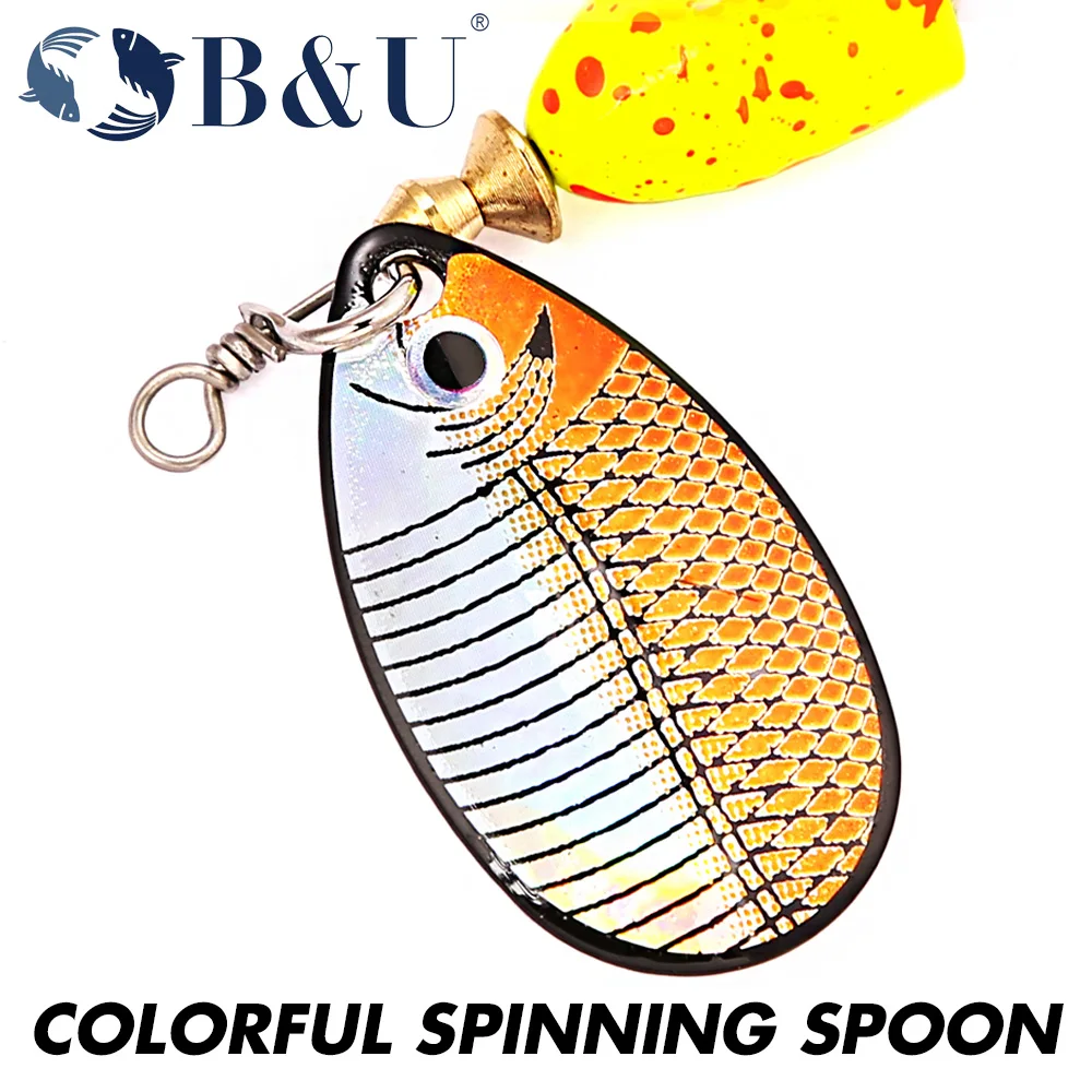 B & U Spinner-cebo duro de Metal, Spinner giratorio, señuelo de Pesca, cuchara, lentejuelas, Wobblers, lubina, Pesca con anzuelos triples
