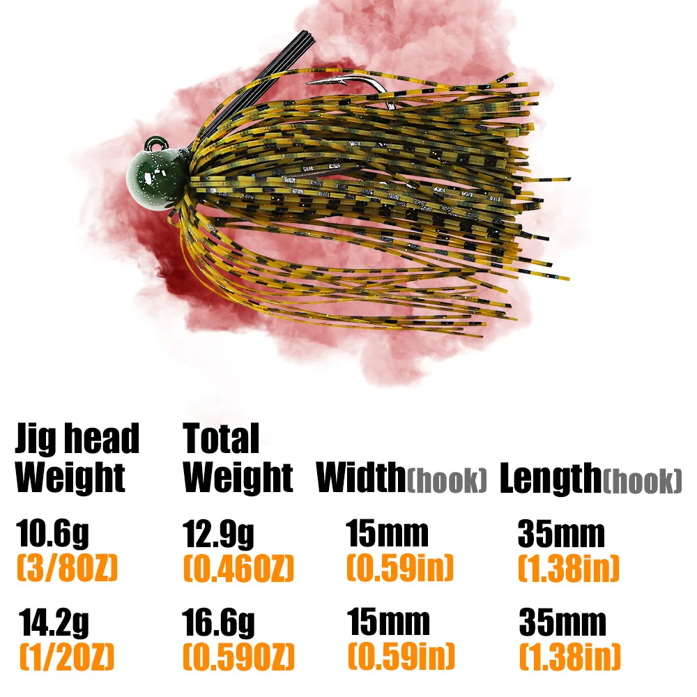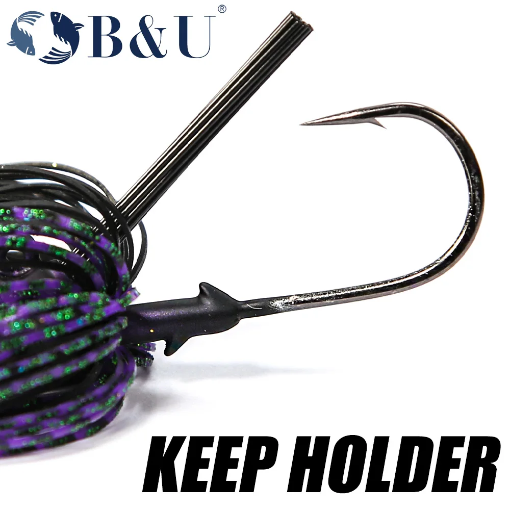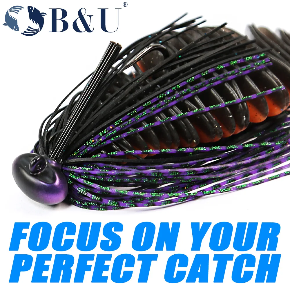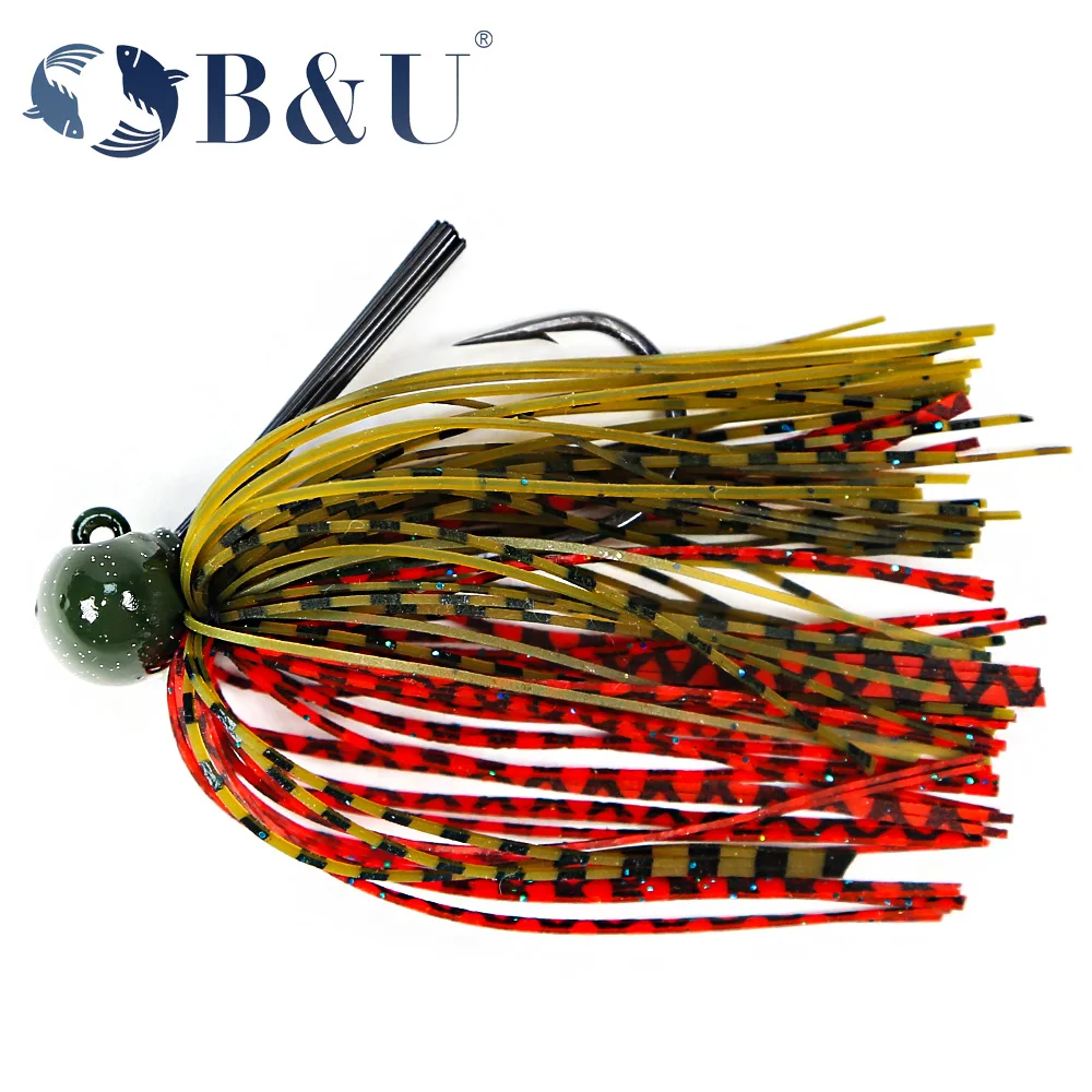 B & U, 1 unidad, 3/8oz, 1/2oz, plantilla de fútbol sin malezas para lubina, plantilla de goma de silicona, falda, anzuelo afilado, plantilla de volteo, cebo Artificial para lubina