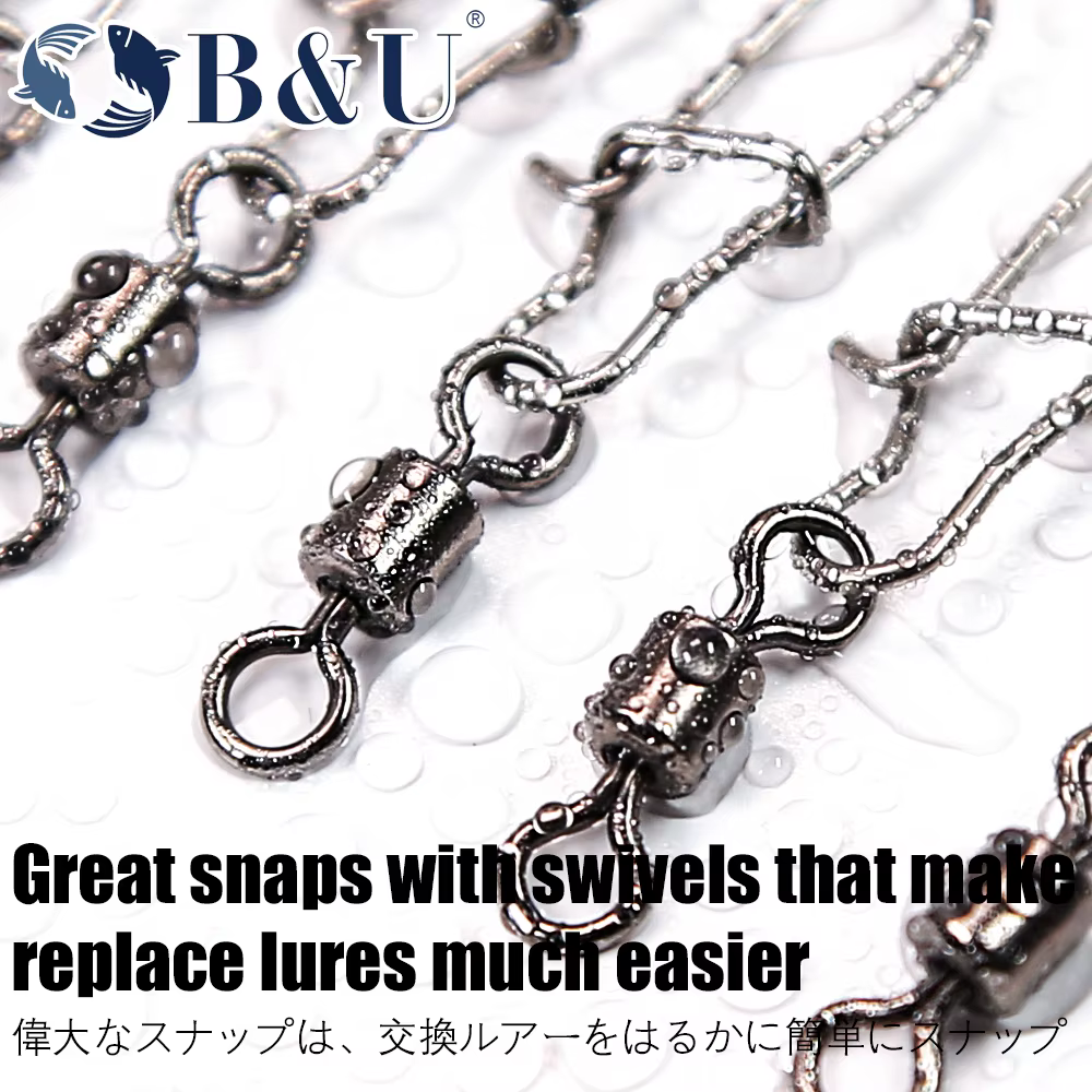 Excelentes broches con giratorios que facilitan mucho el reemplazo de señuelos.