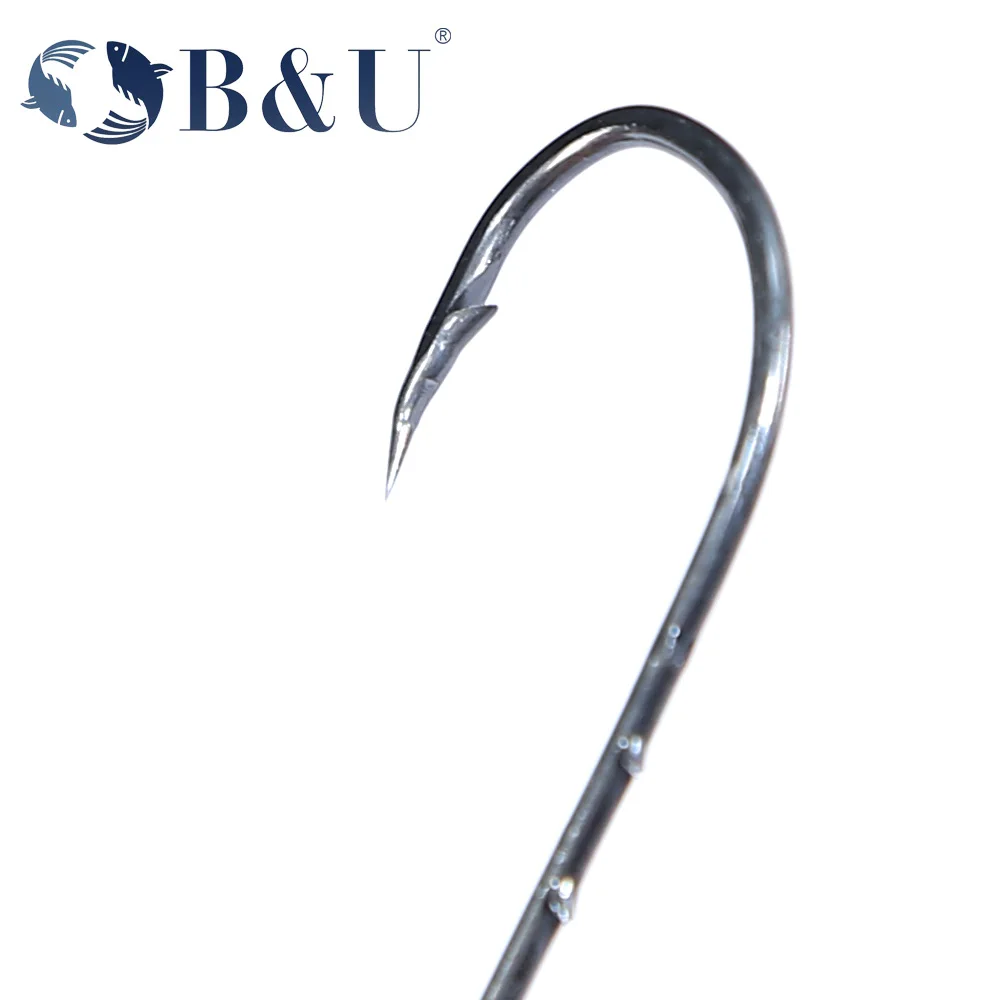 B & U 50 unids/lote anzuelos de pesca de púas de vástago largo y recto de acero rico en carbono para pesca en agua dulce y salada