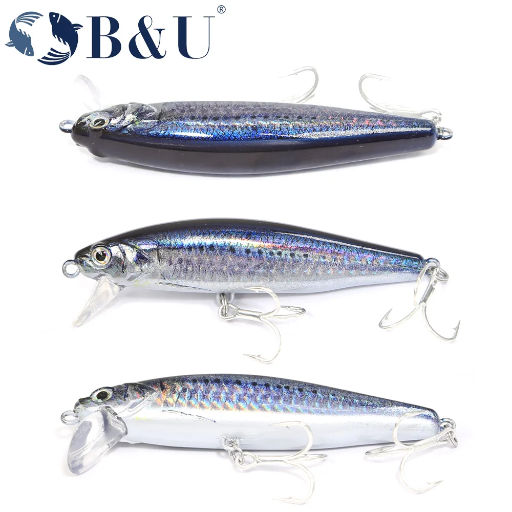 B & U 80mm hundimiento Minnow señuelo duro Jerkbait agua salada larga distancia de fundición Señuelos de pesca mar cebo Artificial Wobblers lubina