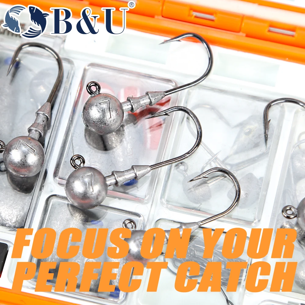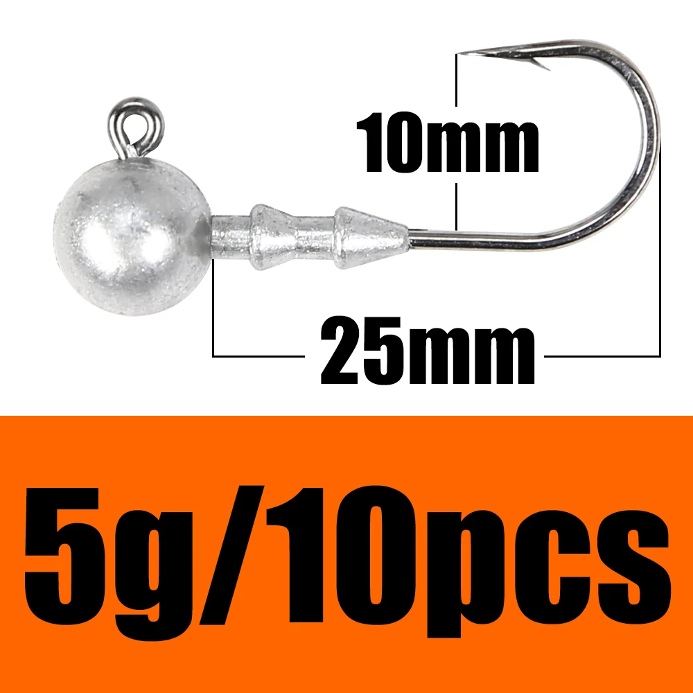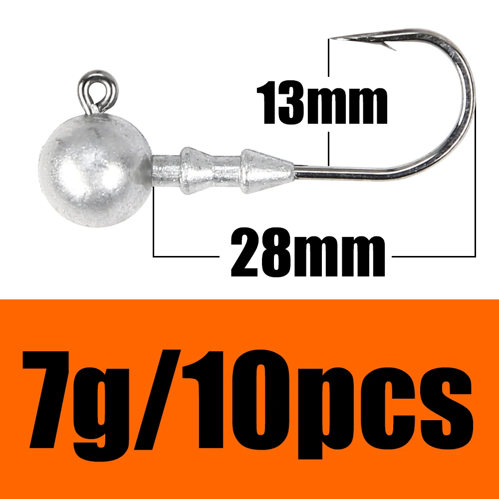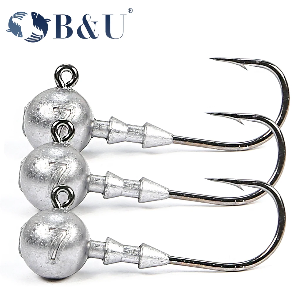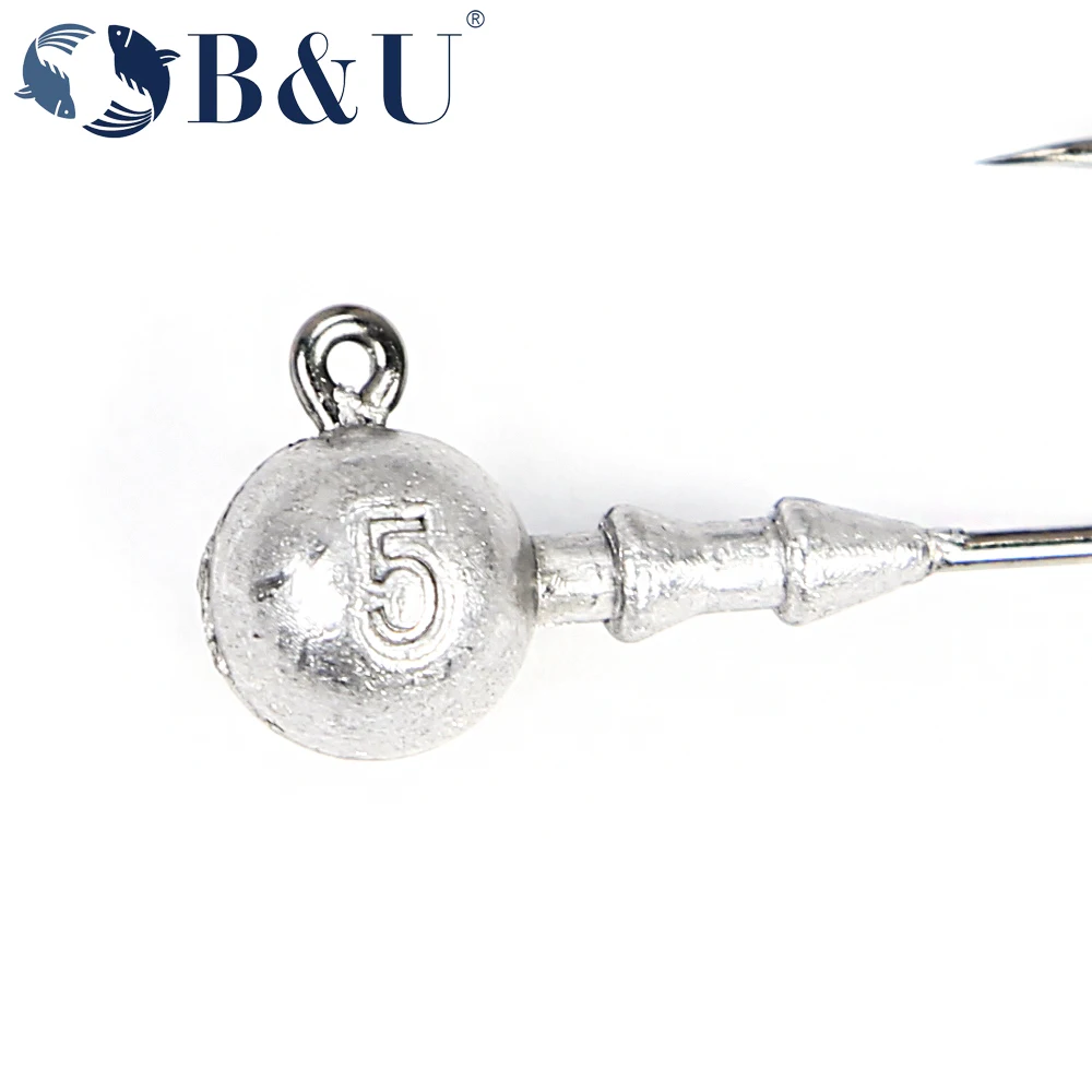 B & U-anzuelo de pesca con cabeza plomada, accesorios de pesca con cabeza redonda de 5g 7g, 10 unidades/lote