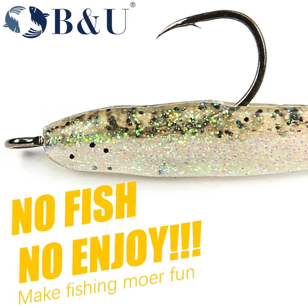 B & U-anzuelos de pesca de acero al carbono, aparejos de gusanos suaves de acero de alto carbono, anillo de ojos grandes, 20 piezas