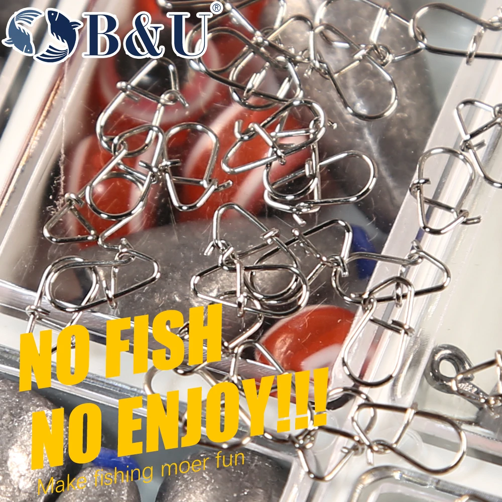 B & U-broches de pesca de acero inoxidable, 50 piezas, Micro Clips de cierre rápido, Conector de seguridad, accesorios, aparejos para señuelos, ganchos
