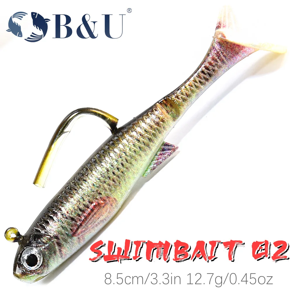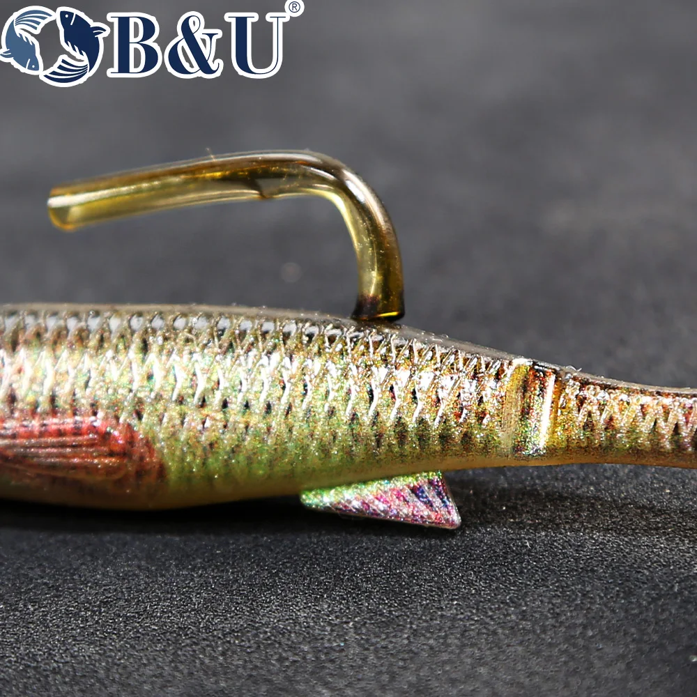B & U-cebo de plástico blando para pesca, señuelo Swimbait de mar, cabeza de plantilla, aparejos de pesca de un solo gancho, perca de sábalo, Wobblers de Lucio