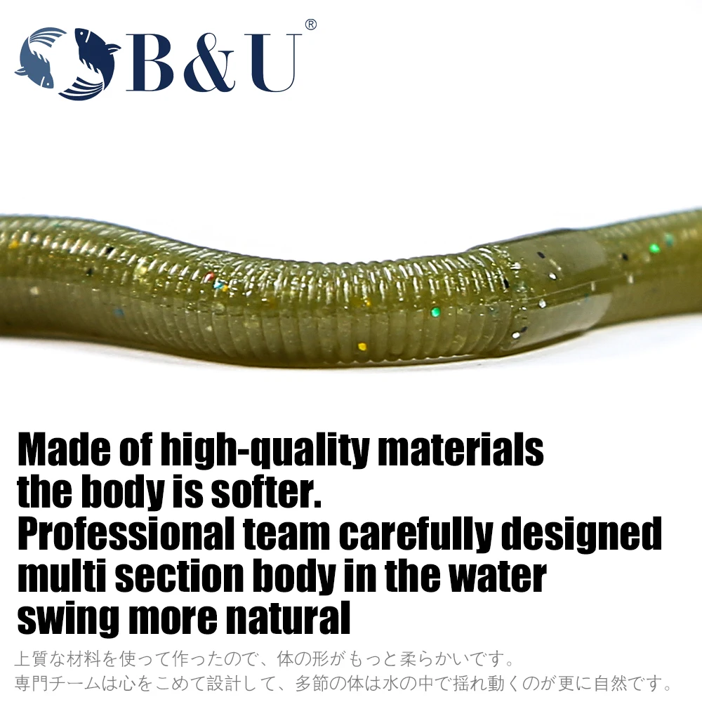 B & U gusano señuelos blandos 10cm 2,9g 8 unids/bolsa pesca Artificial silicona lubina Lucio Minnow Swimbait Jigging cebos de plástico