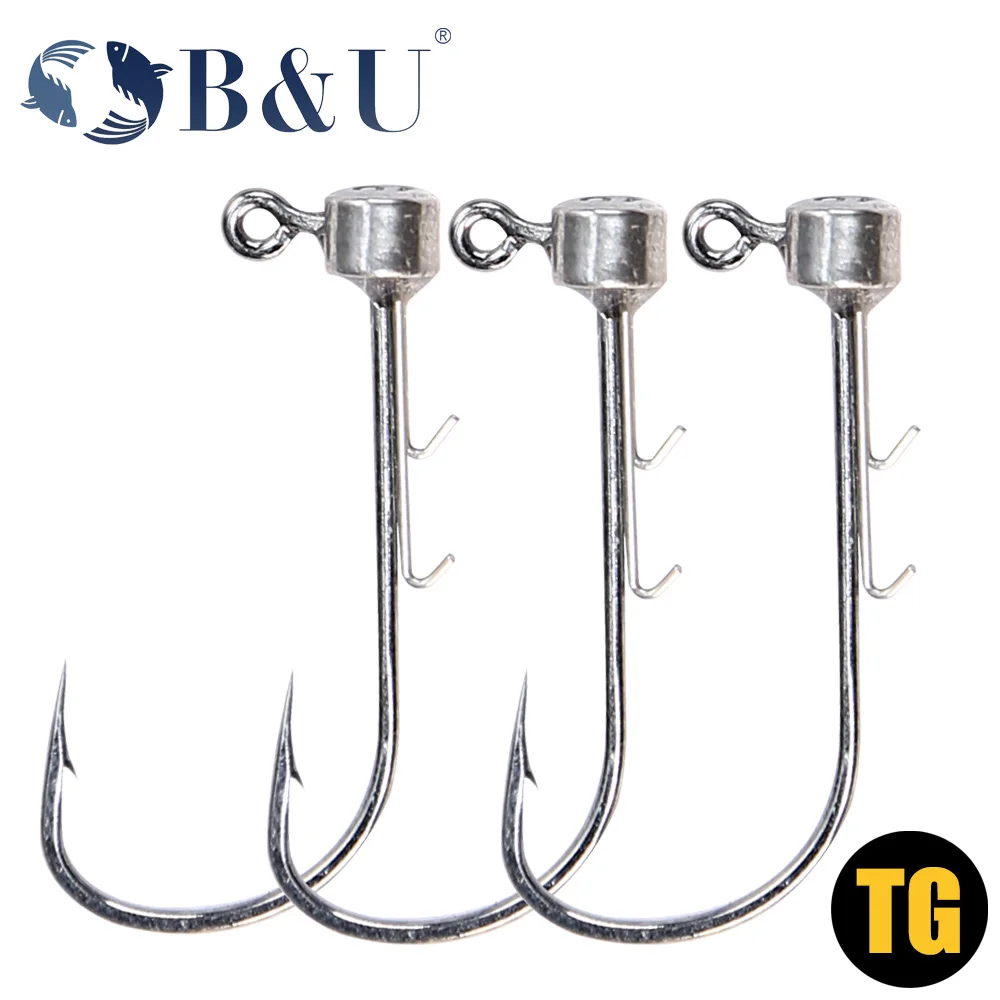B & U-Jig Head de tungsteno Ned, 1g, 1,5g, 2g, 2,5g, 3g, 3,5g, Micro anzuelo Ajing Finesse con señuelo Mustad, anzuelo de gusano de pesca para señuelo suave