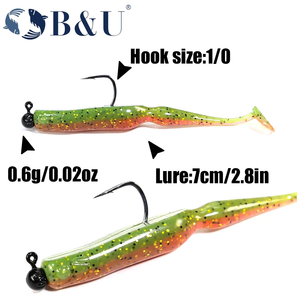 B & U-señuelo de cebo suave de 70mm para Lucio, Zander, billar, perca, pesca con aparejo de cabeza JIG, Hoduller de cebo Flexible para pesca con caña