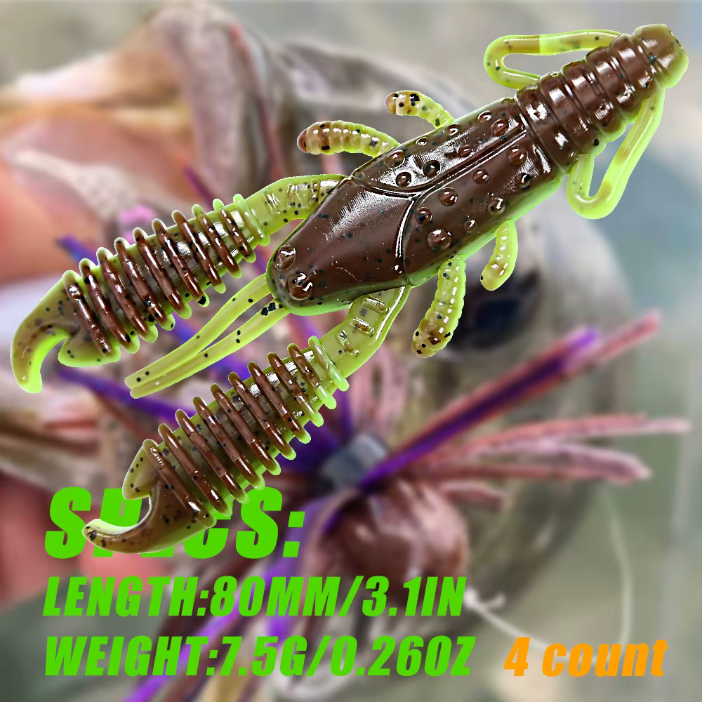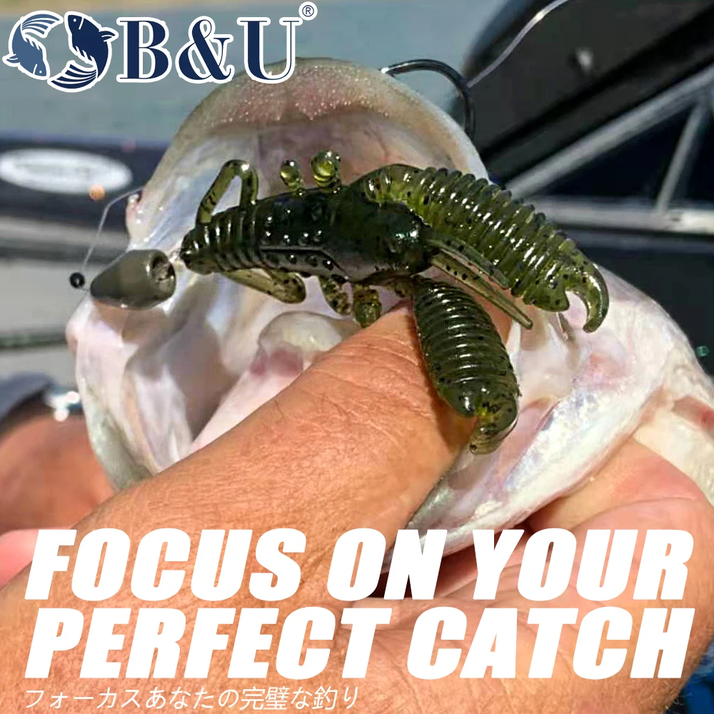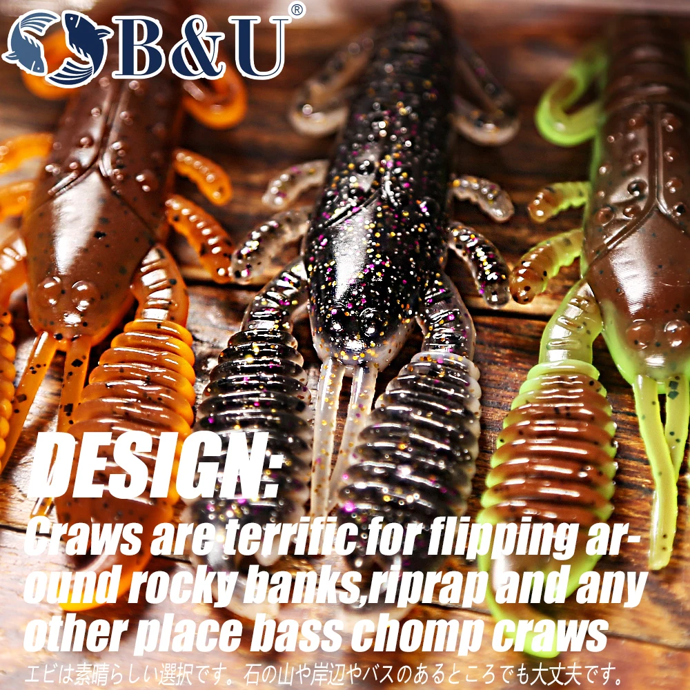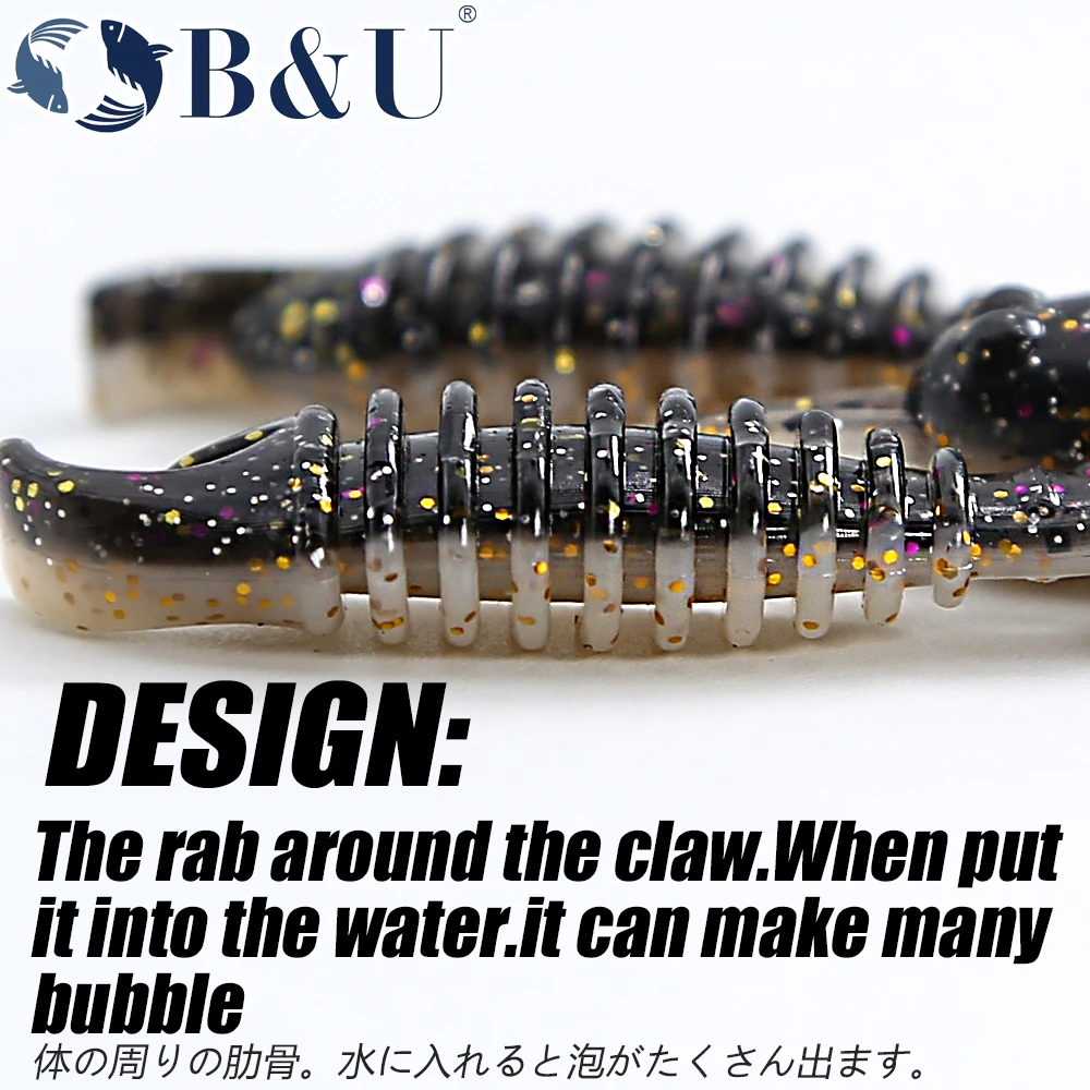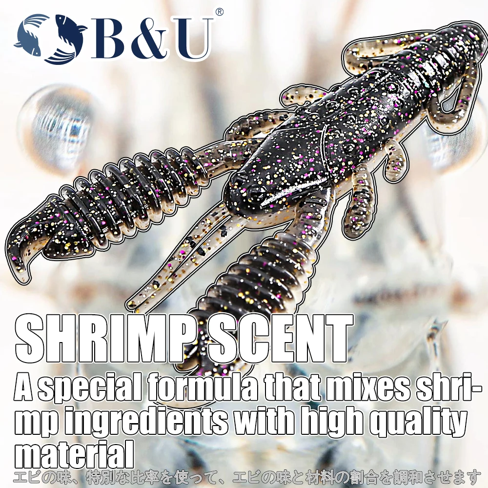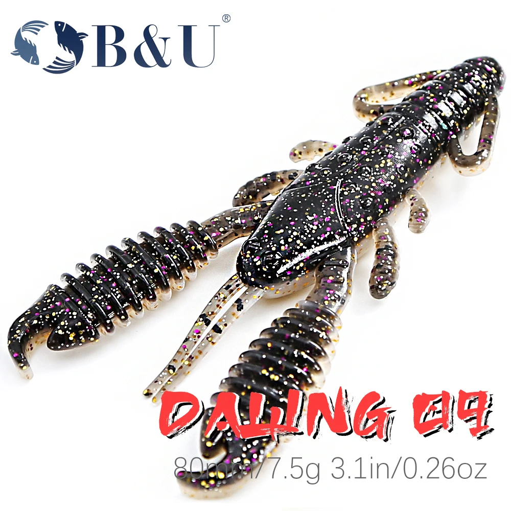 B & U-señuelo de pesca Crankbait con forma de camarón de silicona suave, 8cm, Jigging Wobbler, perca de lubina, señuelos de pesca artificiales