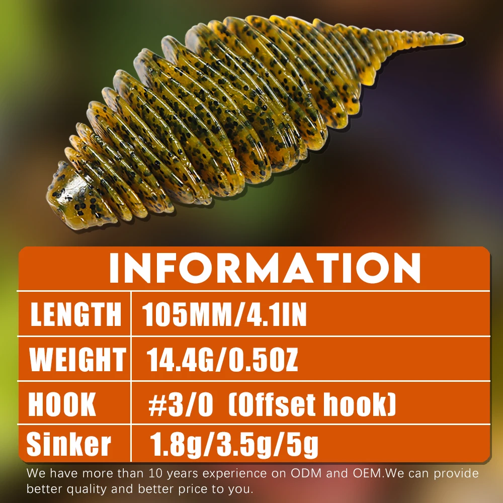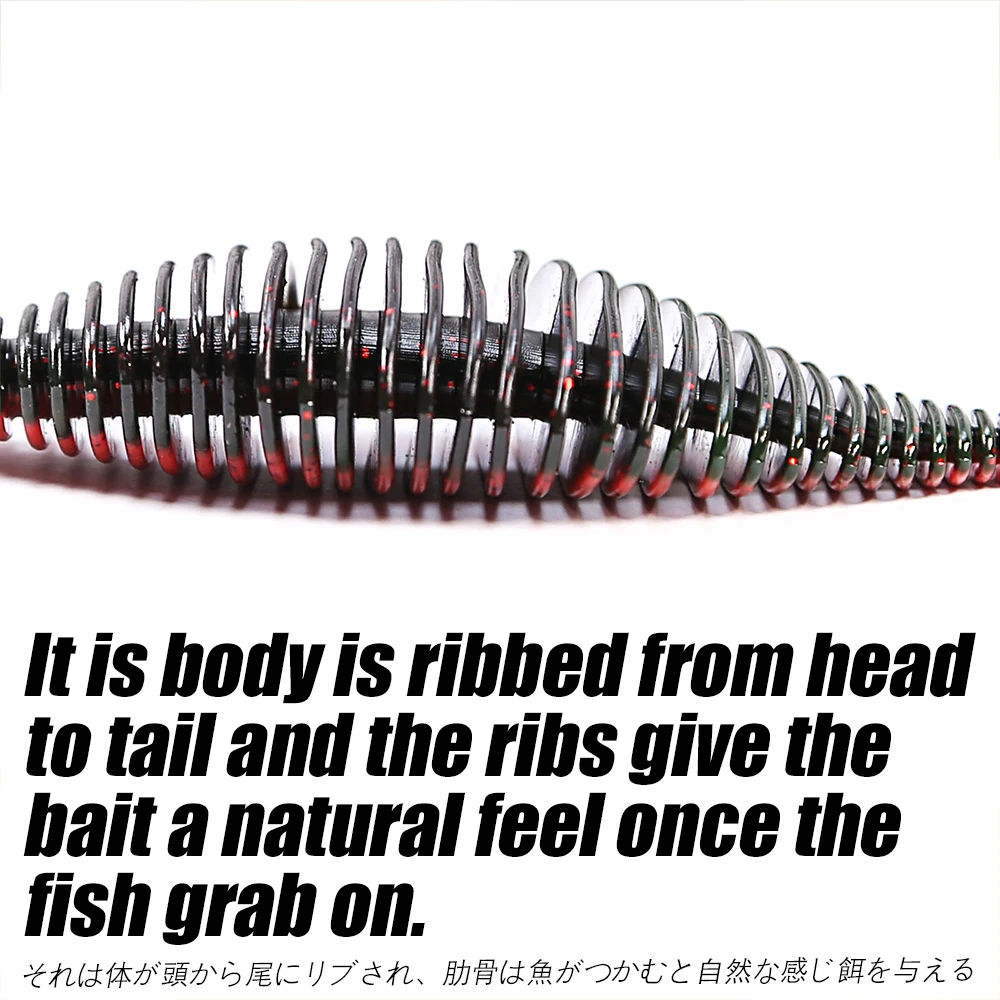 Su cuerpo está acanalado desde la cabeza hasta la cola y las costillas le dan al cebo una sensación natural una vez que el pez se agarra.