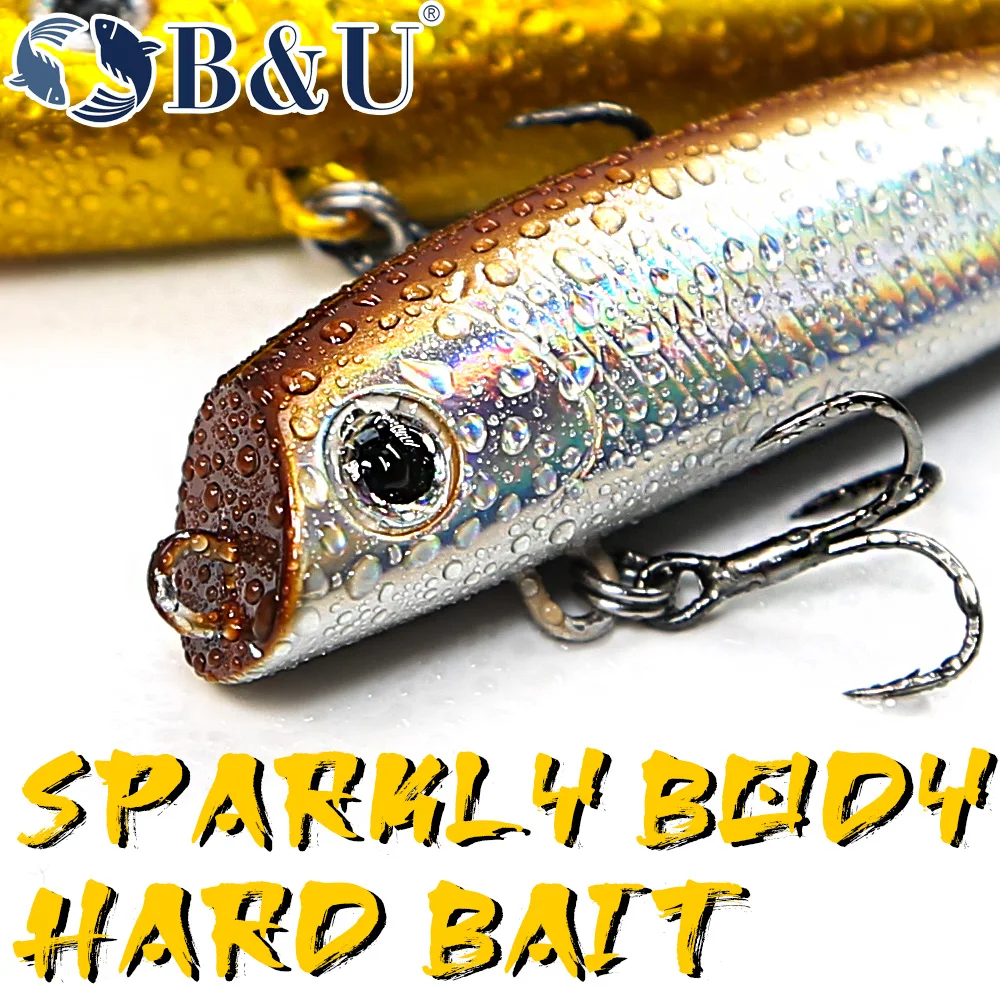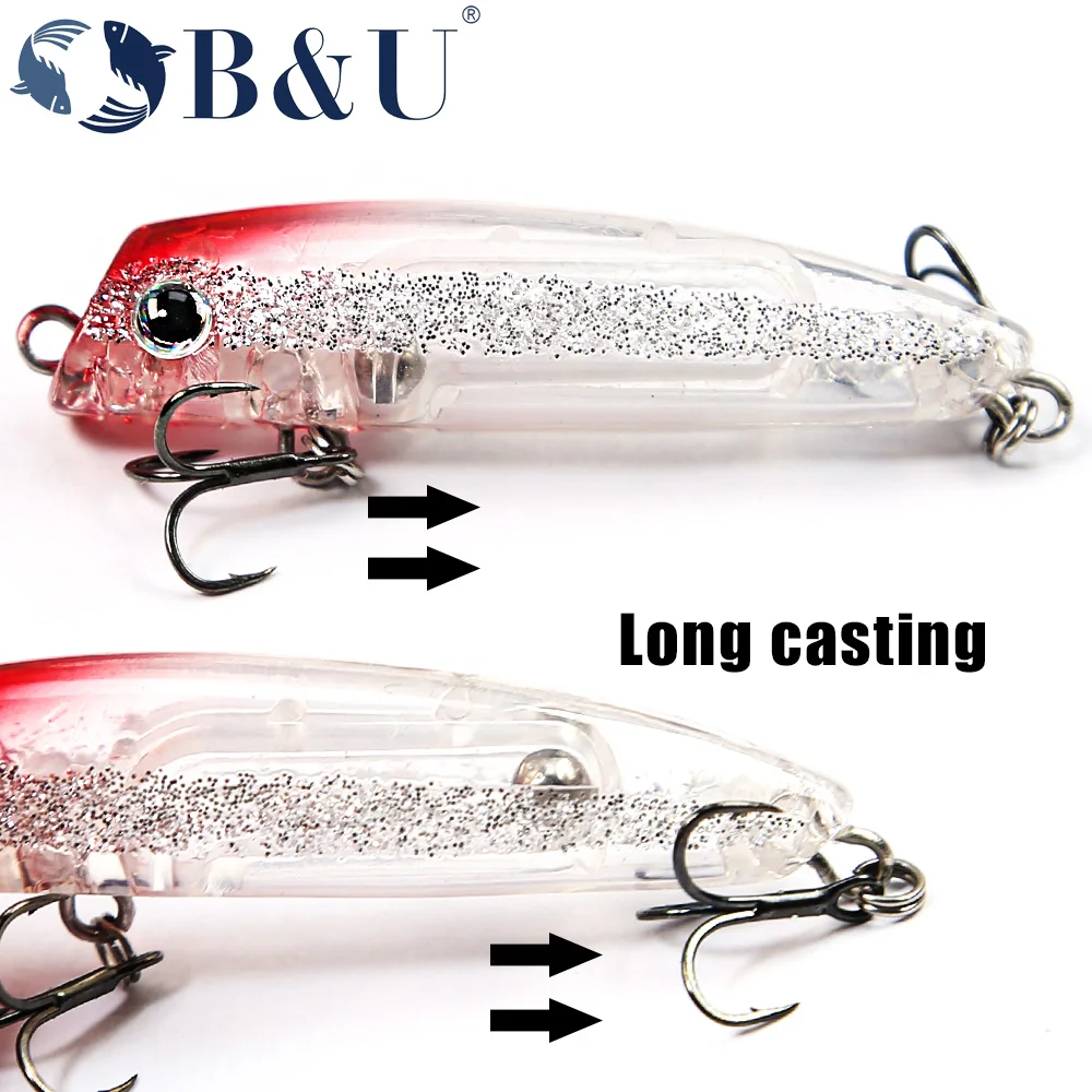 B & U-señuelo tipo lápiz Poppen flotante para Pesca de lubina, perca, Wobbler, superficie de superficie de agua salada, palo de Pesca, andador de plástico para lubina