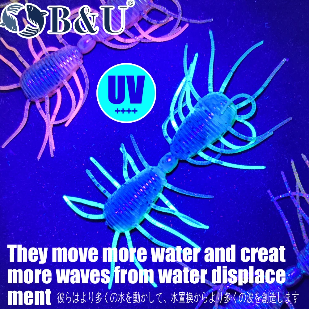 B & U-SEÑUELOS blandos de Larva de 50mm, cebos artificiales de pesca de silicona para lubina, perca, Lucio, Swimbait, Jigging, gusano de plástico