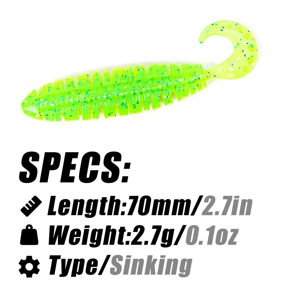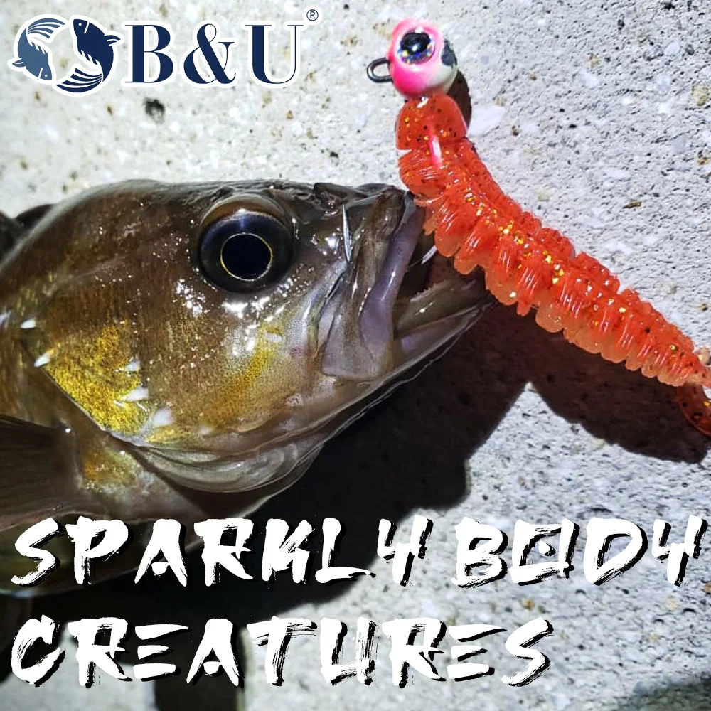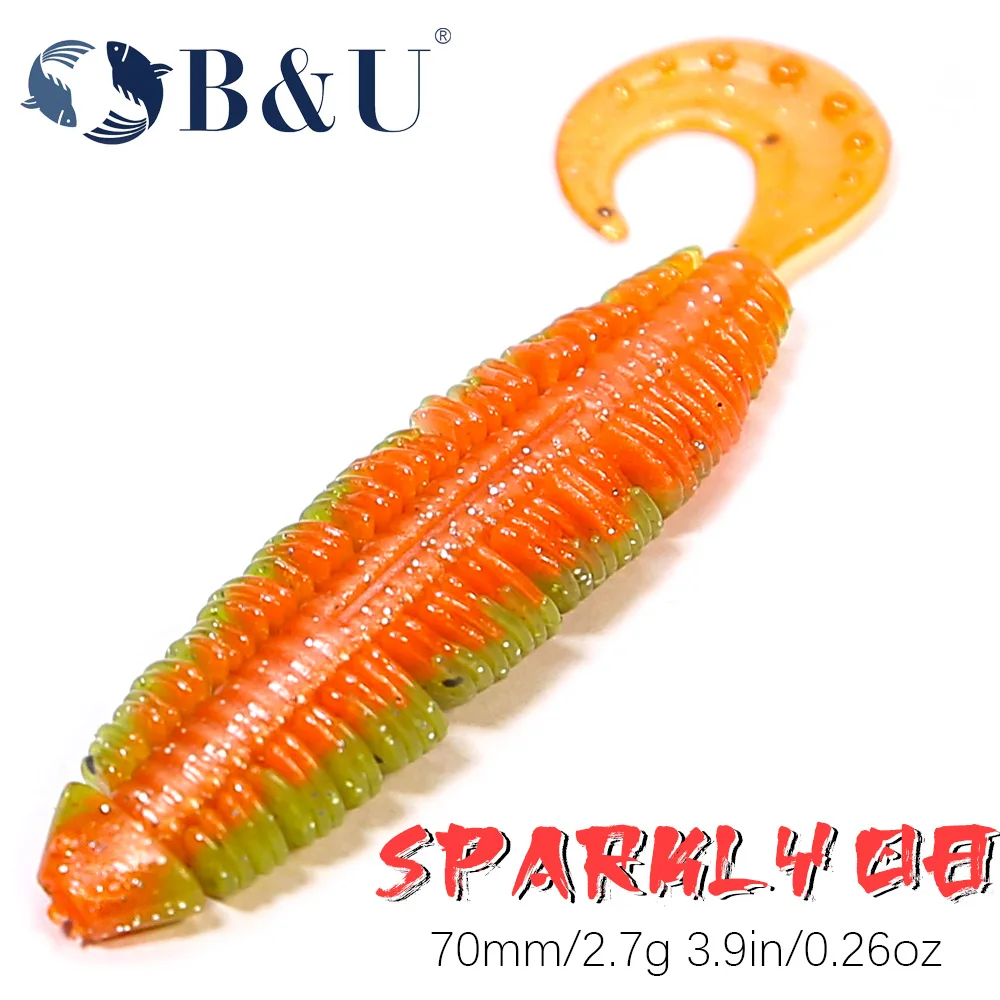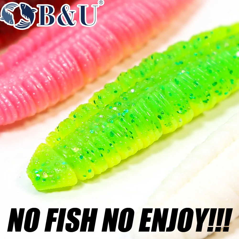 B & U-SEÑUELOS blandos de pesca, cebos de gusano Artificial de silicona, aparejos de pesca crankbait, 6 piezas, 70mm
