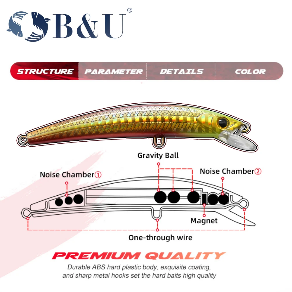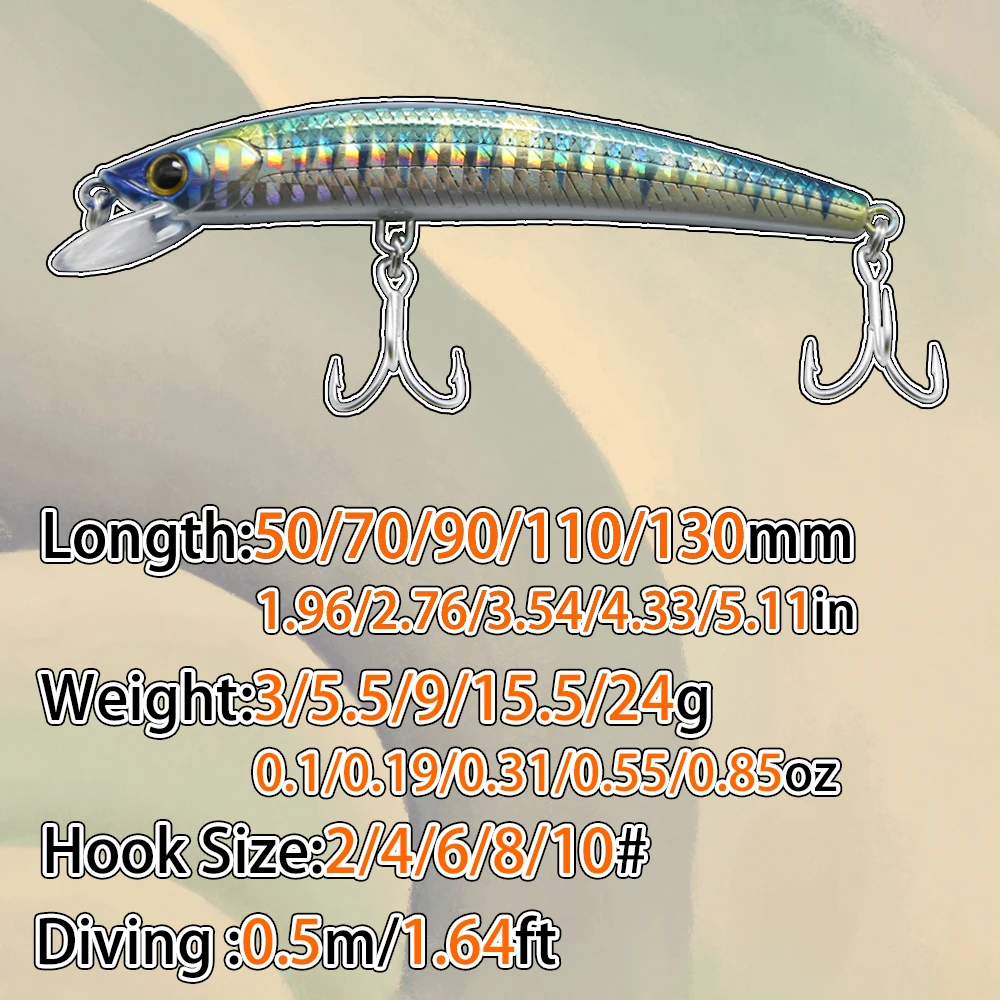 B & U-Señuelos de Pesca de 50/70/90/110/130mm, cebo duro de 9 colores a elegir, calidad de piscardo profesional, depth0.5m