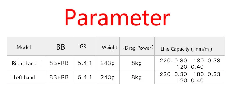 5. Capacidad de la línea: 0,30mm/220m, 0,33mm/180m 0,40mm/120m