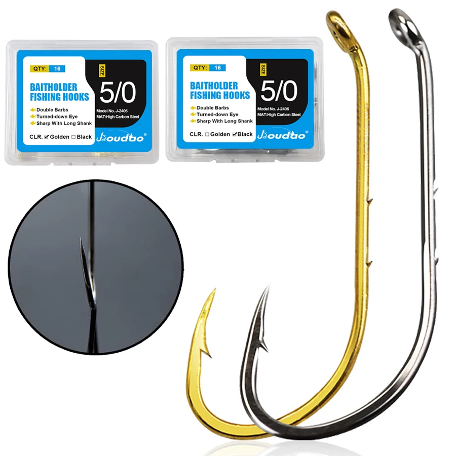 [Great Baitholder Hooks] The long shank provides more setting space for the bait, and the 2 barbs on the back hold the live bait firmly in place to avoid displacement. This hook is great for live bait or soft plastic bait to show the natural beauty of the bait.