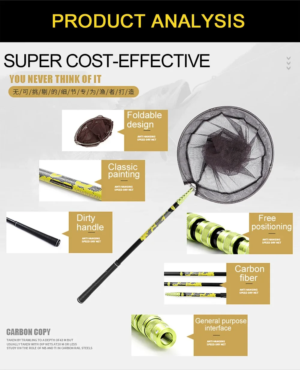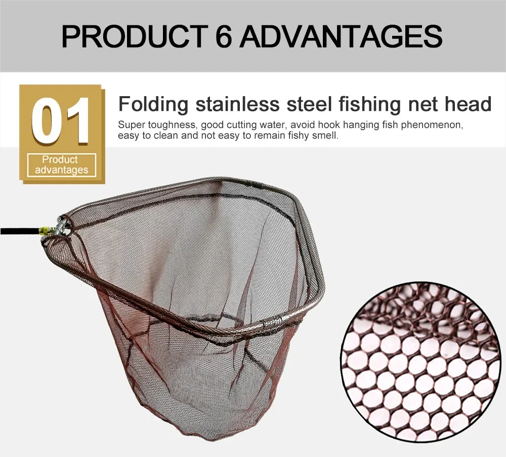Tamaños Redes de pesca de nailon carbono Herramientas de pesca plegables Red de inmersión de aterrizaje de nailon plegable con profundidad de agujero de malla de rombos