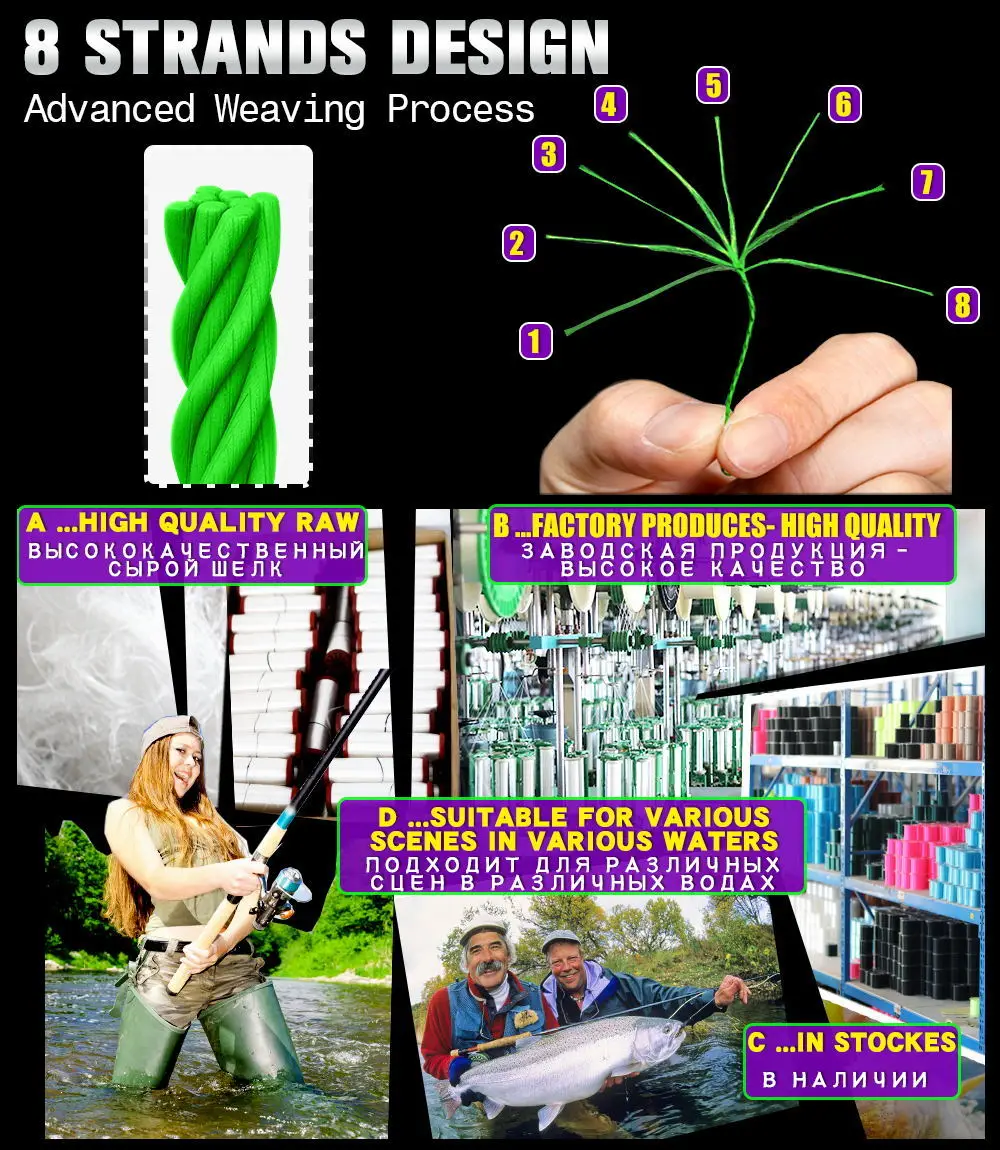 1. Tecnología avanzada de alambre trenzado de 8 hilos intercalados.