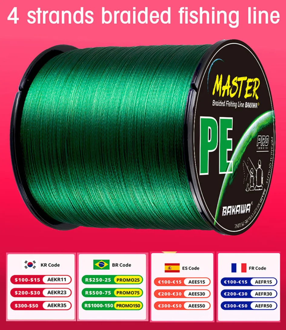 BAKAWA 8 hebras 1000M 500M 300M LÍNEA DE Pesca trenzada multifilamento Pesca carpa Super fuerte tejido mar agua salada extremo 100% PE