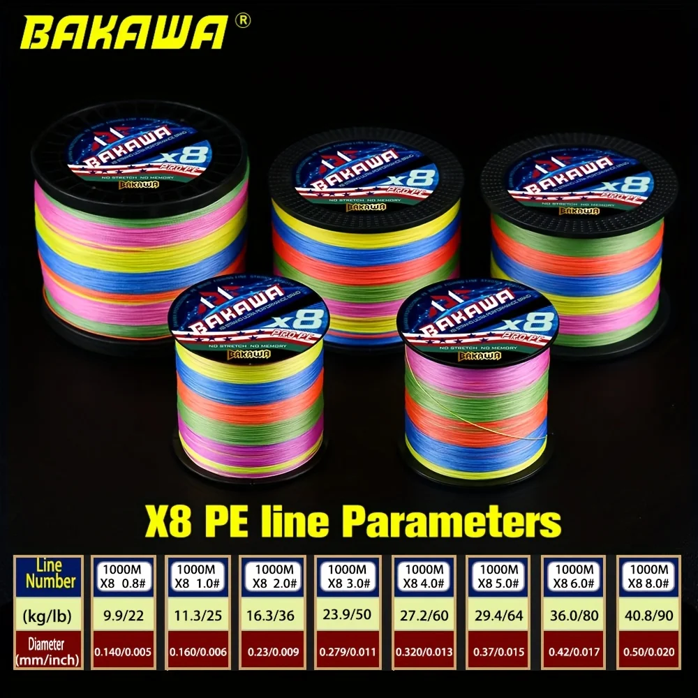 BAKAWA 8 hebras 1000m línea trenzada multifilamento 22-90LB Multicolor súper fuerte Japón X8 PE línea alambre de pesca de agua salada Pesca