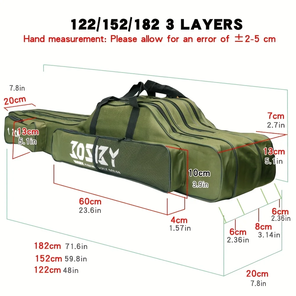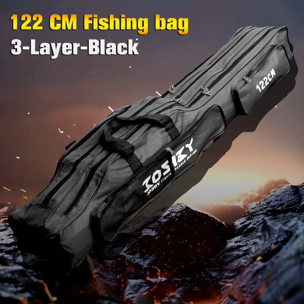 BAKAWA bolsa para caña de pescar 122/152/182CM mochila de pesca negra de 3 capas bolsa de pesca para aparejos al aire libre bolsa Oxford accesorios de pesca