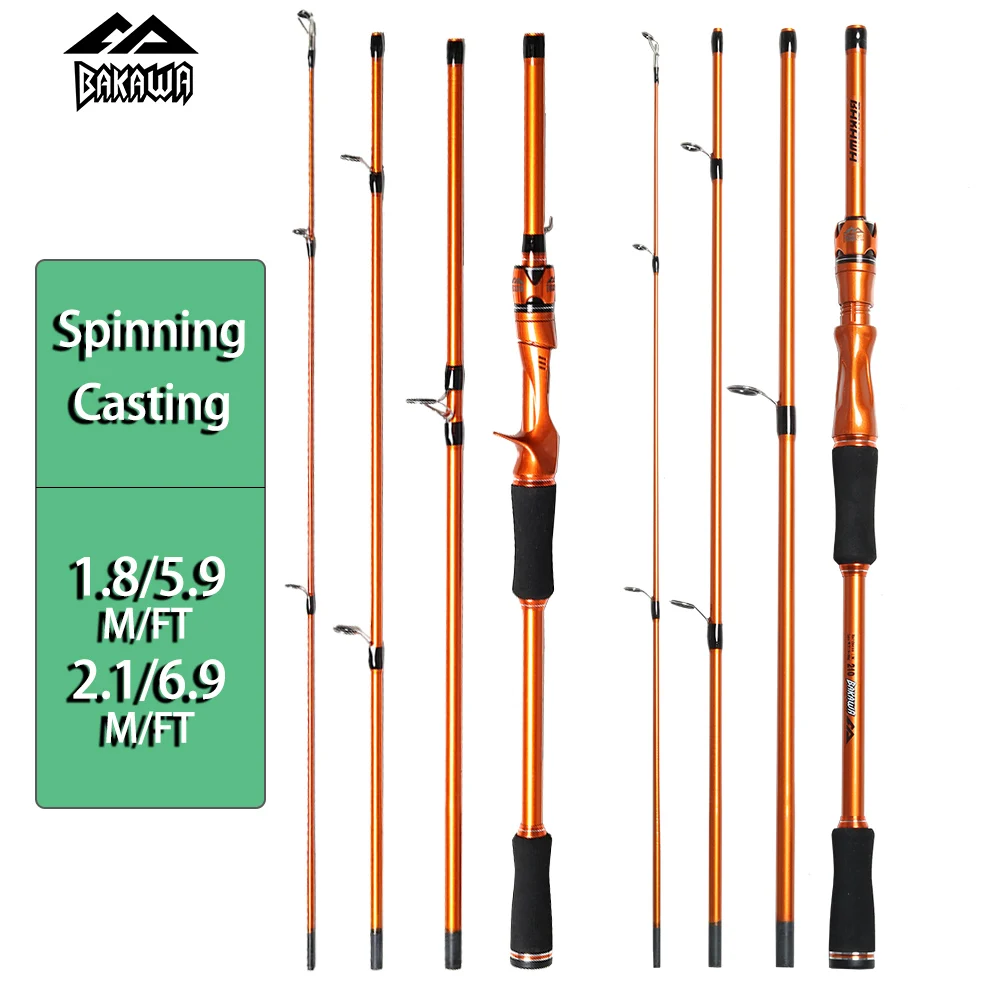 BAKAWA-caña de pescar giratoria de 1,8 M, 2,1 M, 4 secciones de fundición, alimentador de señuelos portátil de viaje, para aparejos de agua dulce y salada