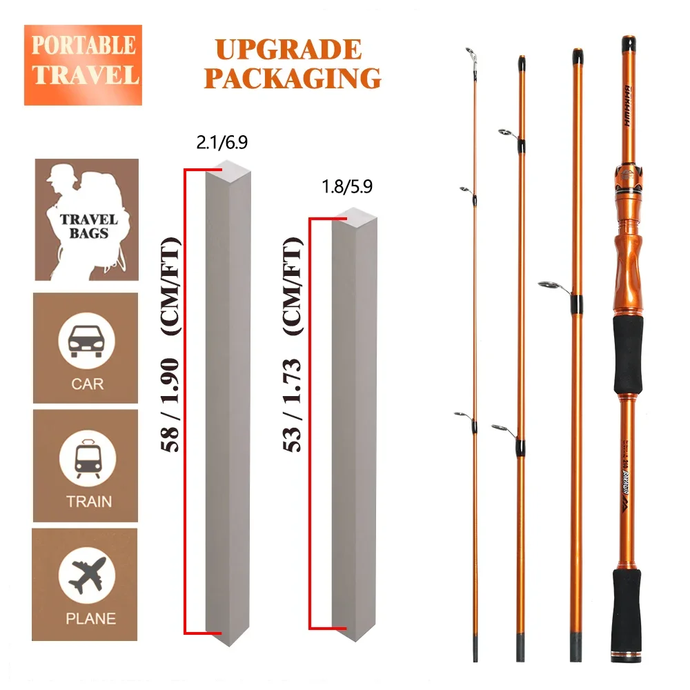 BAKAWA-caña de pescar giratoria de 1,8 M, 2,1 M, 4 secciones de fundición, alimentador de señuelos portátil de viaje, para aparejos de agua dulce y salada