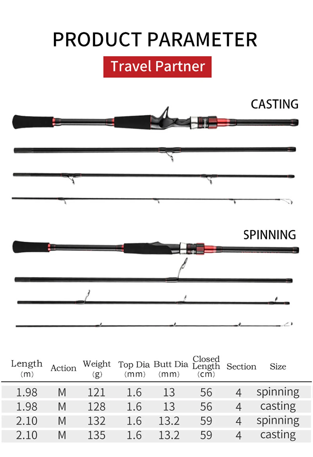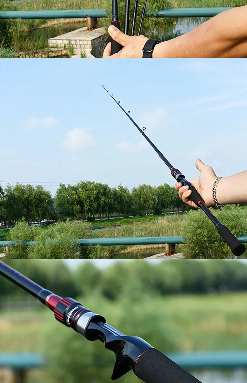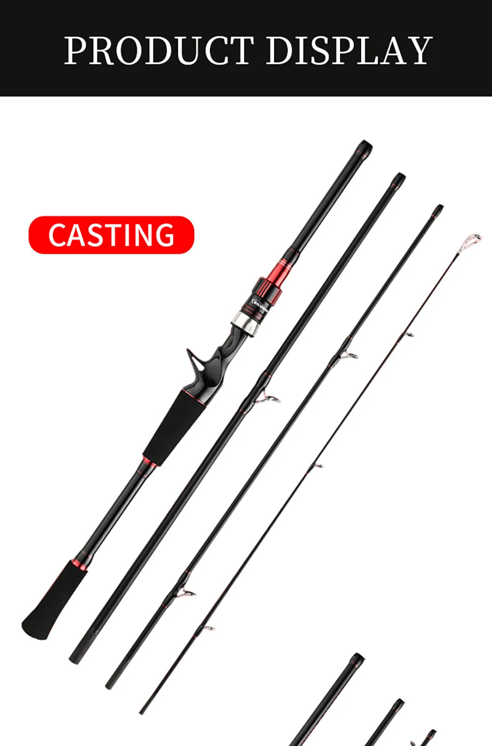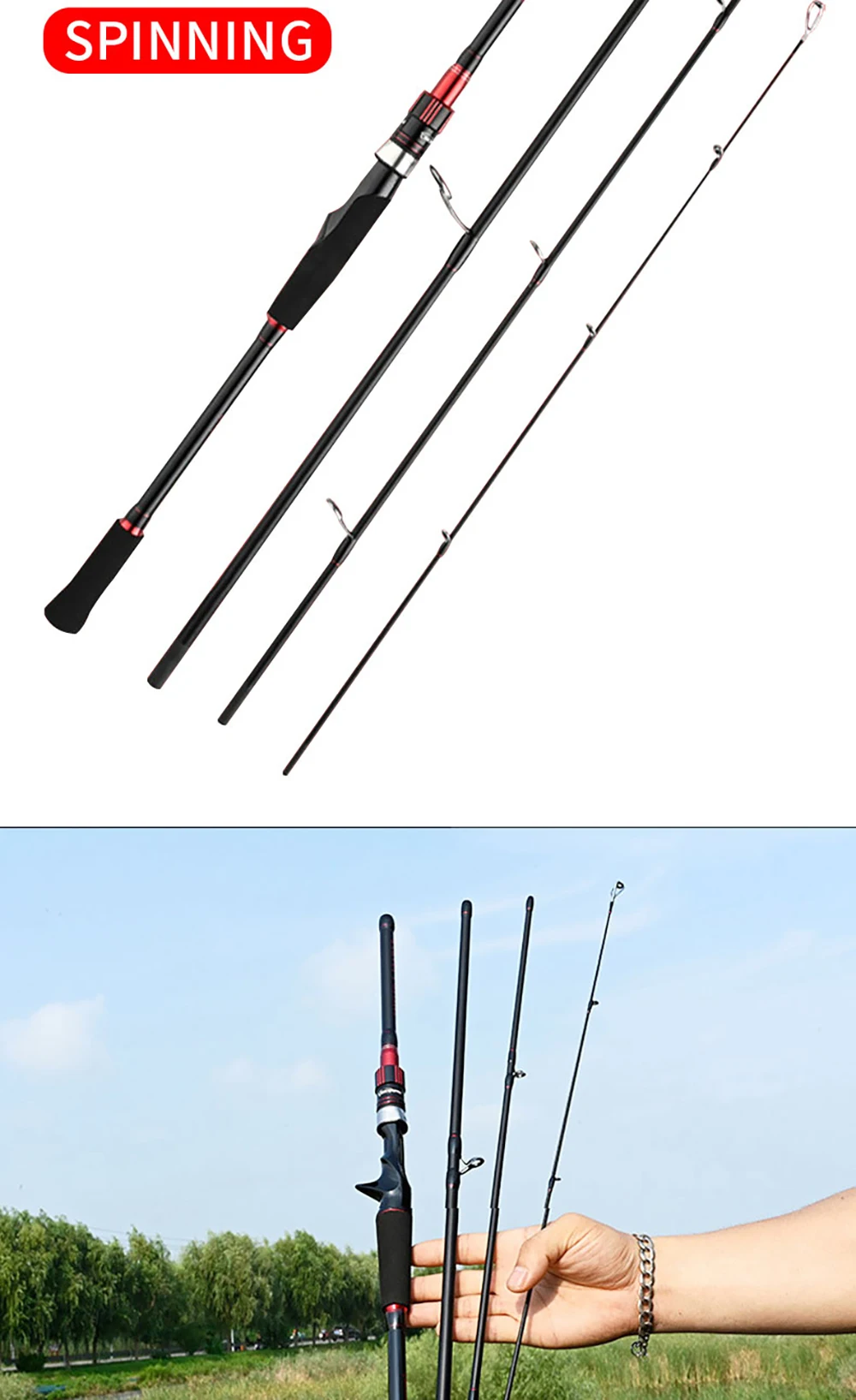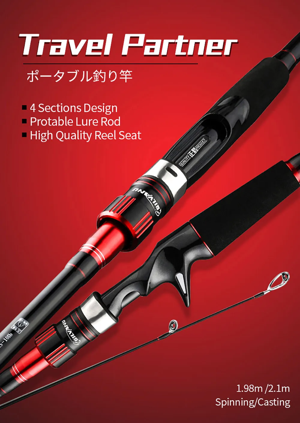 BAKAWA-caña de pescar portátil de 4 secciones, 1,98 m, 2,1 m, alta potencia de carbono, fundición giratoria, alimentador de agua dulce