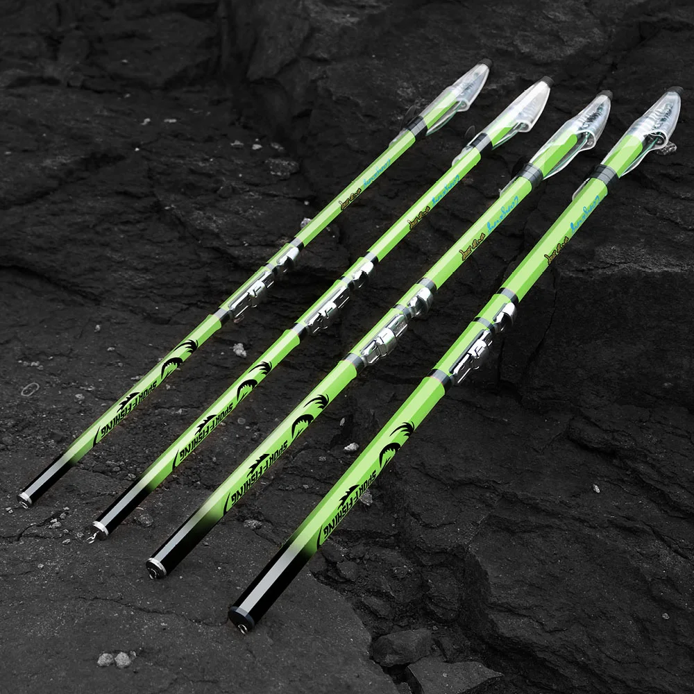 Esta es una caña de pescar hermosa y fuerte, verde hierba ecológica, pintura exquisita, práctica y fascinante.