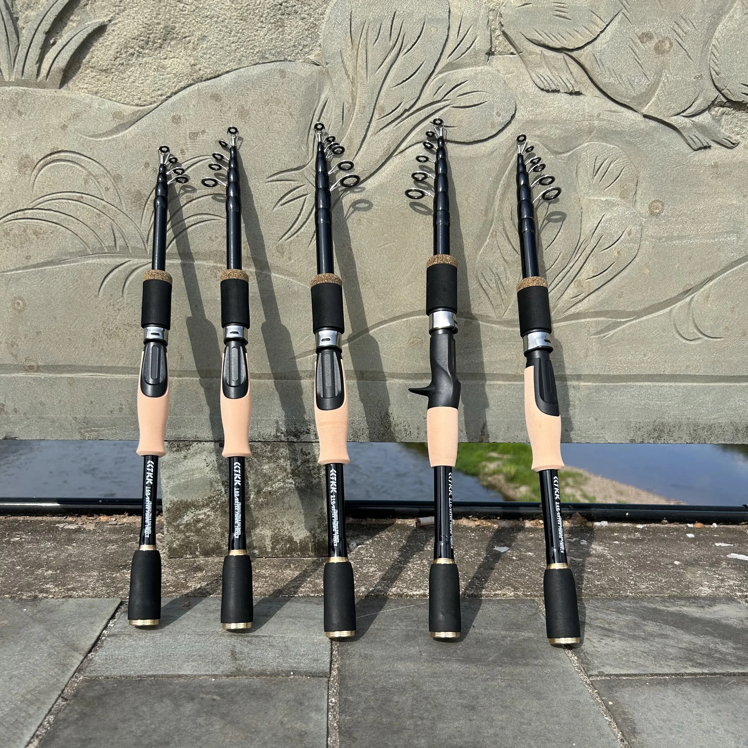 BAKAWA-caña de pescar telescópica con mango de madera de corcho, aparejo giratorio de fibra de carbono, 1,6 M, 1,8 M, 2,1 M, 2,4 M, novedad