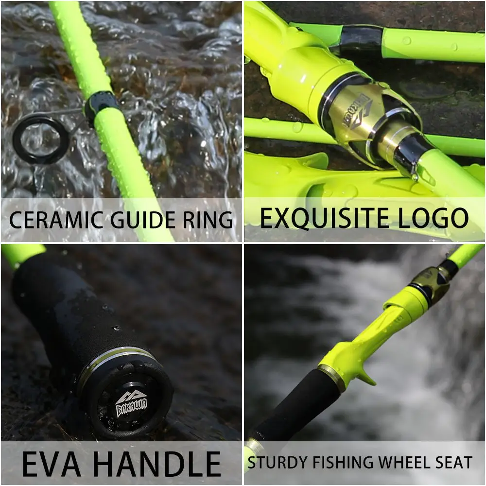 BAKAWA-cañas de pescar giratorias, caña de pescar con mango EVA, 4 secciones, ultraligera, alimentador de viaje, 1,8 M, 2,1 M