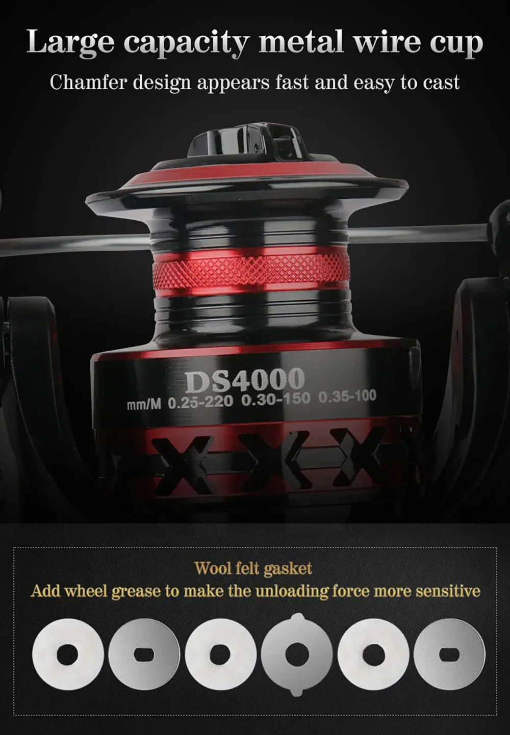 Características del producto: taza de alambre de metal de gran capacidad, sin espacio unidireccional, agarre basculante totalmente metálico, engranaje de alambre grueso y flexible, anillo de salida de metal, cuerpo principal de alta resistencia, ¡Pesca en roca, pesca en el mar, ruedas giratorias en general! ¡Póngase en contacto con el servicio al cliente para grandes cantidades!