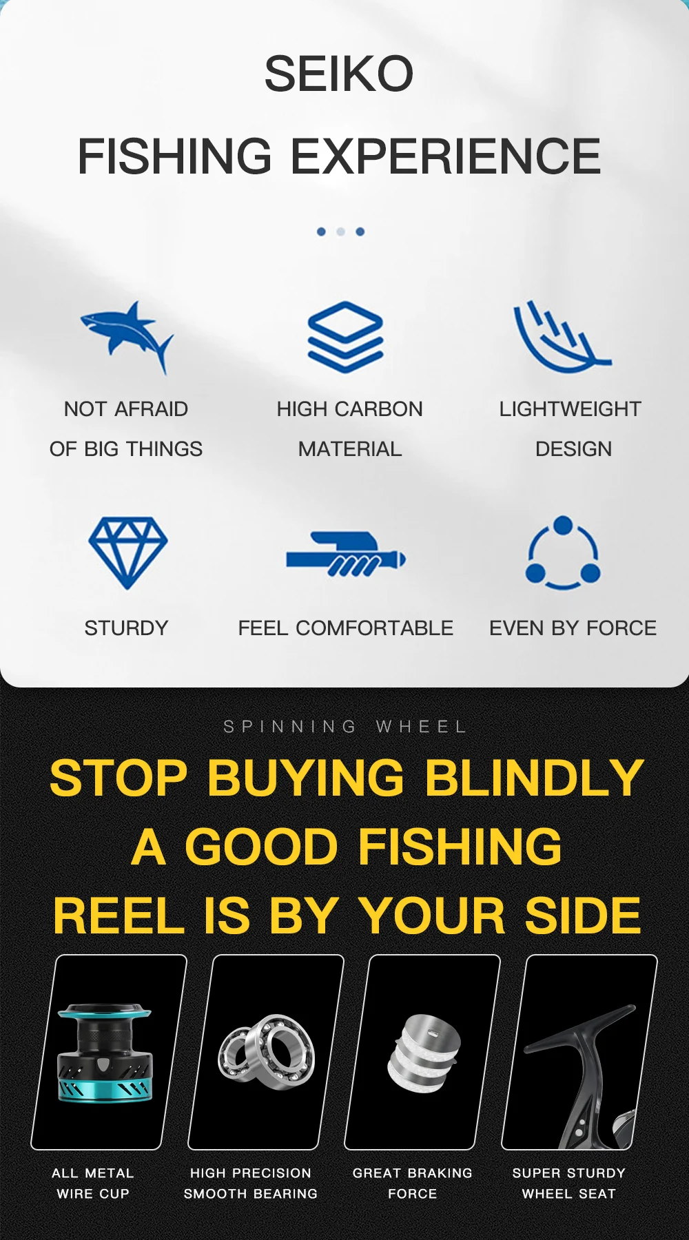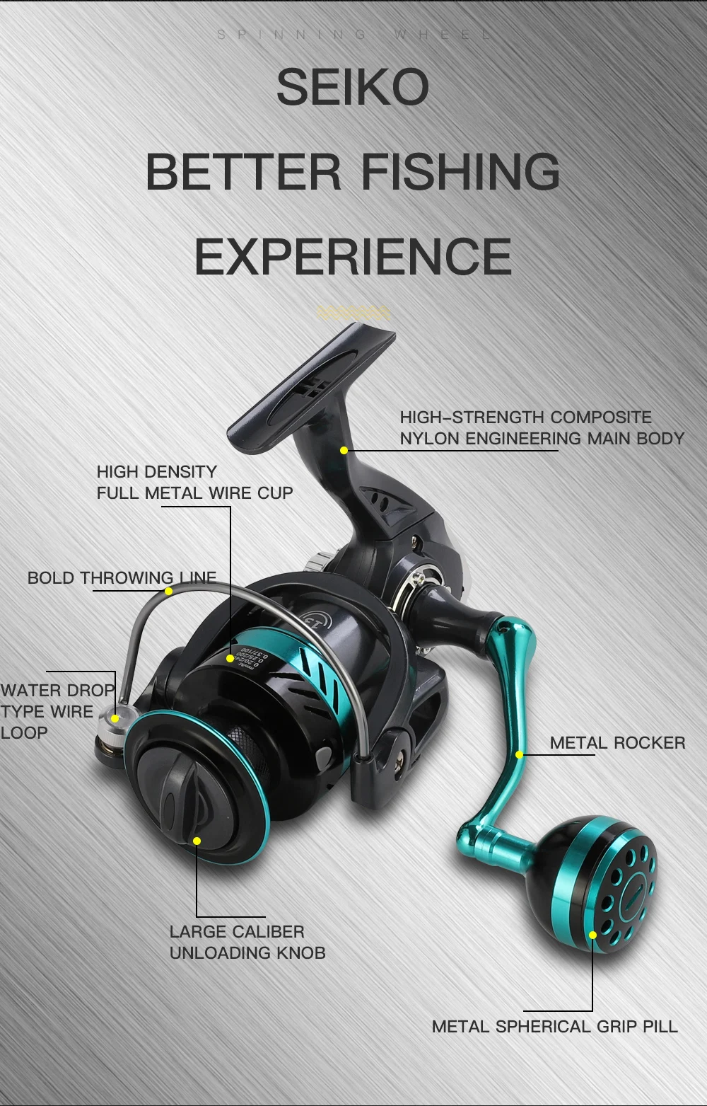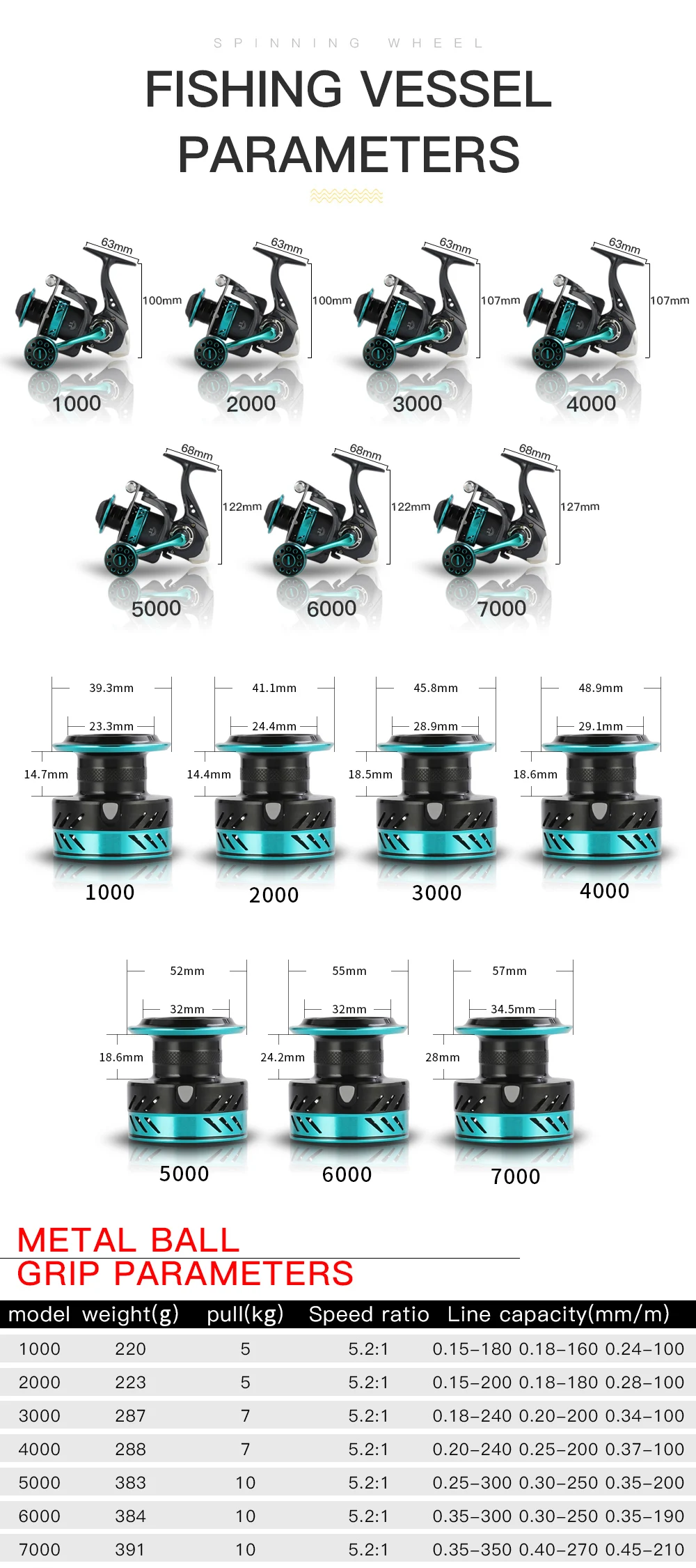 BAKAWA-carrete de pesca giratorio DK 1000-7000, 10kg de potencia, relación de engranaje 5,2: 1, carrete de Metal, rueda de agua salada, balancín CNC