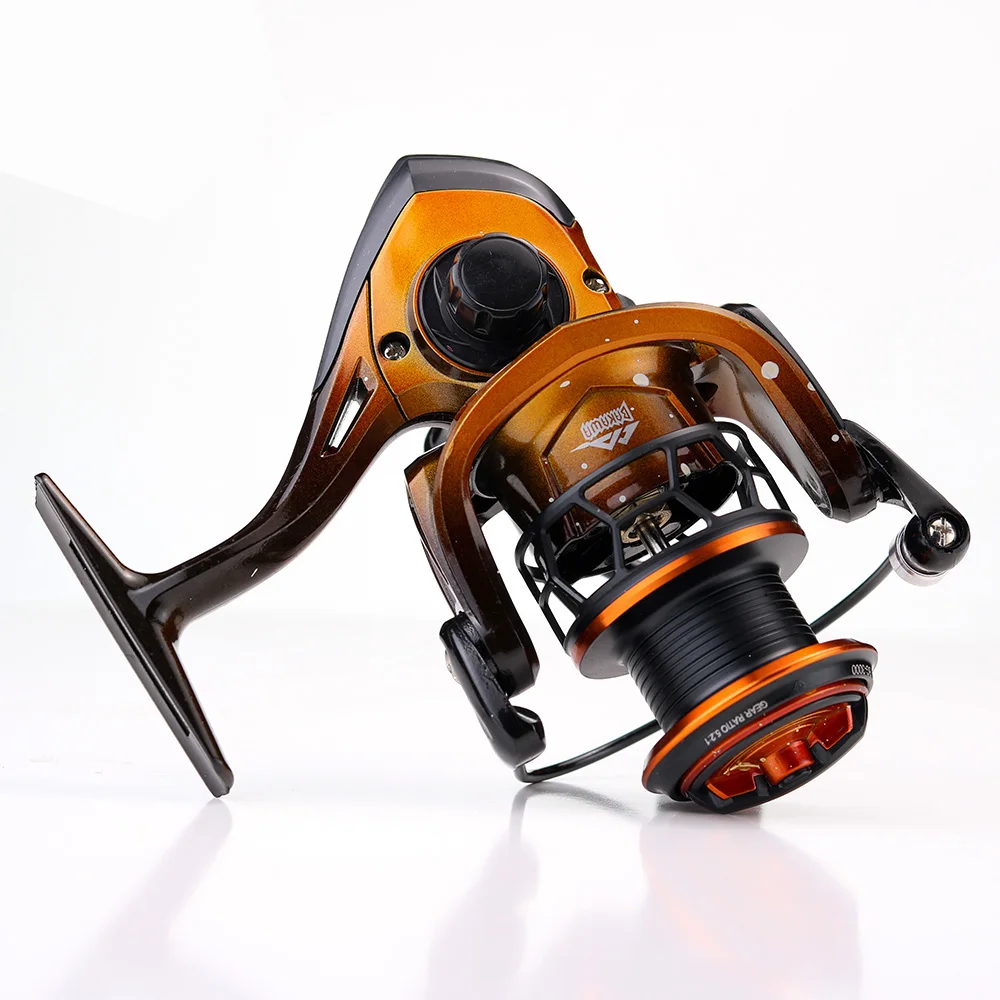BAKAWA-carrete de Pesca giratorio serie 1000, 2000, 3000, copa de línea de Metal, Pesca 5,2: 1, relación de engranaje, rueda, carpa, aparejos de agua dulce y de mar