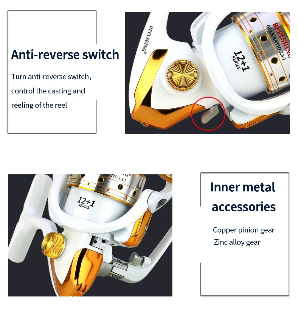 BAKAWA-Carretes de pesca de agua dulce y salada, accesorio giratorio de potencia, Ratio de engranaje 5,5: 1, serie 1000-7000, gran oferta