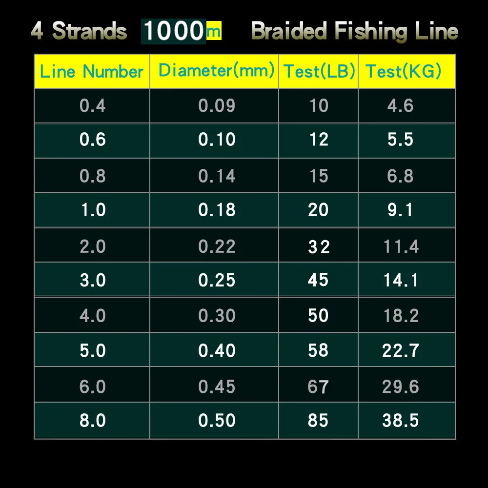 Variante: Color:Braided muticolor Category:Mainline Line Number:4 Strands 1000M 20LB