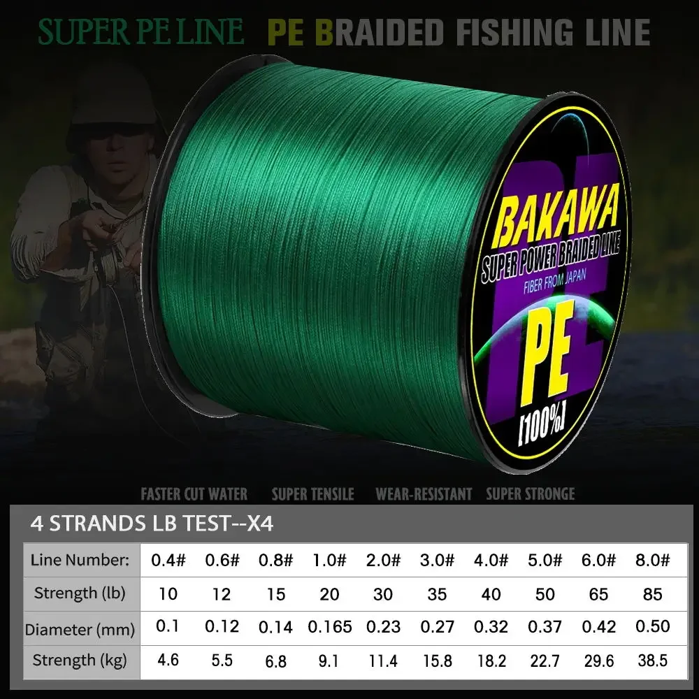 Línea de pesca trenzada BAKAWA 4 Longitud: 300m/330yds Diámetro: 0,02mm-0,42mm, tamaño: 10-85lb Línea trenzada de PE de Japón Línea flotante