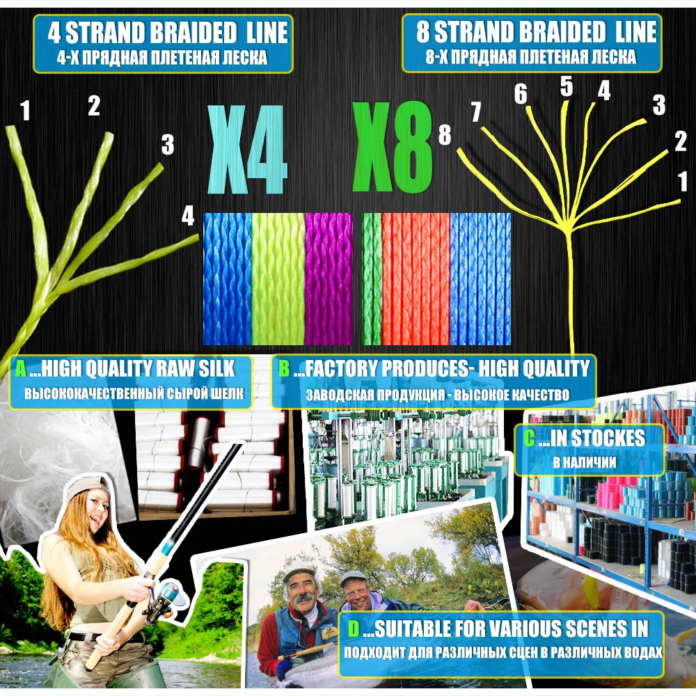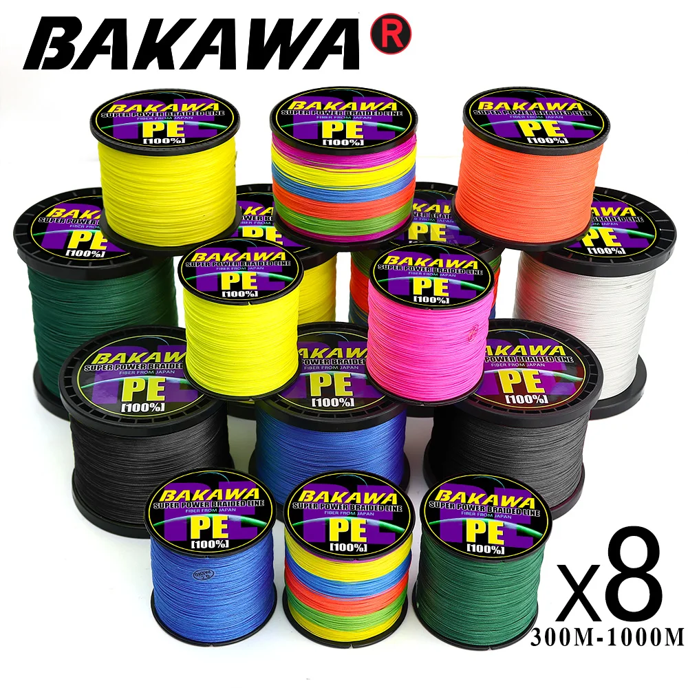 BAKAWA-línea de Pesca trenzada para carpa, hilo de 8 hebras para pescar con mosca, PE, hilo Multifilamento giratorio para mar, 300M, 500M, 1000M, 22-120LB