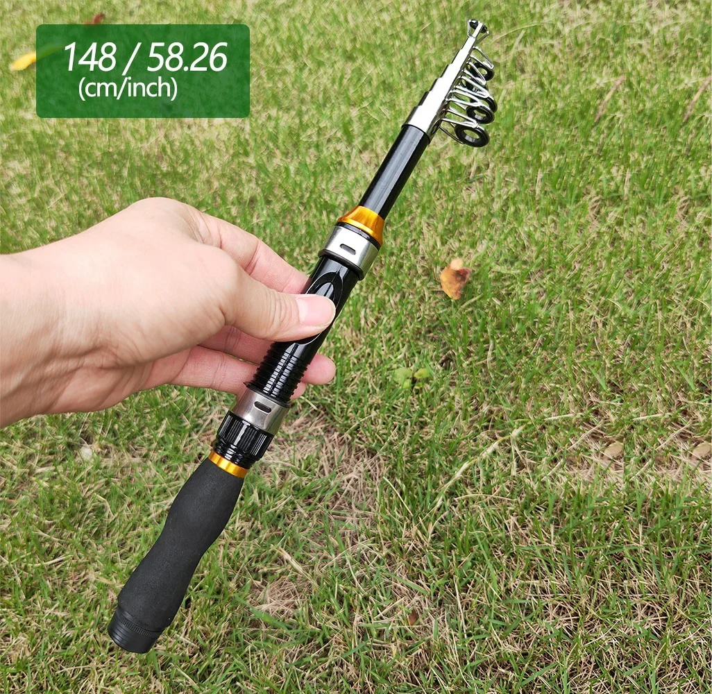 BAKAWA Mini caña de pescar giratoria caña de pescar telescópica 1,5 M/2,1 M/2,3 M caña de pescar portátil Pesca equipo de pesca de carpa