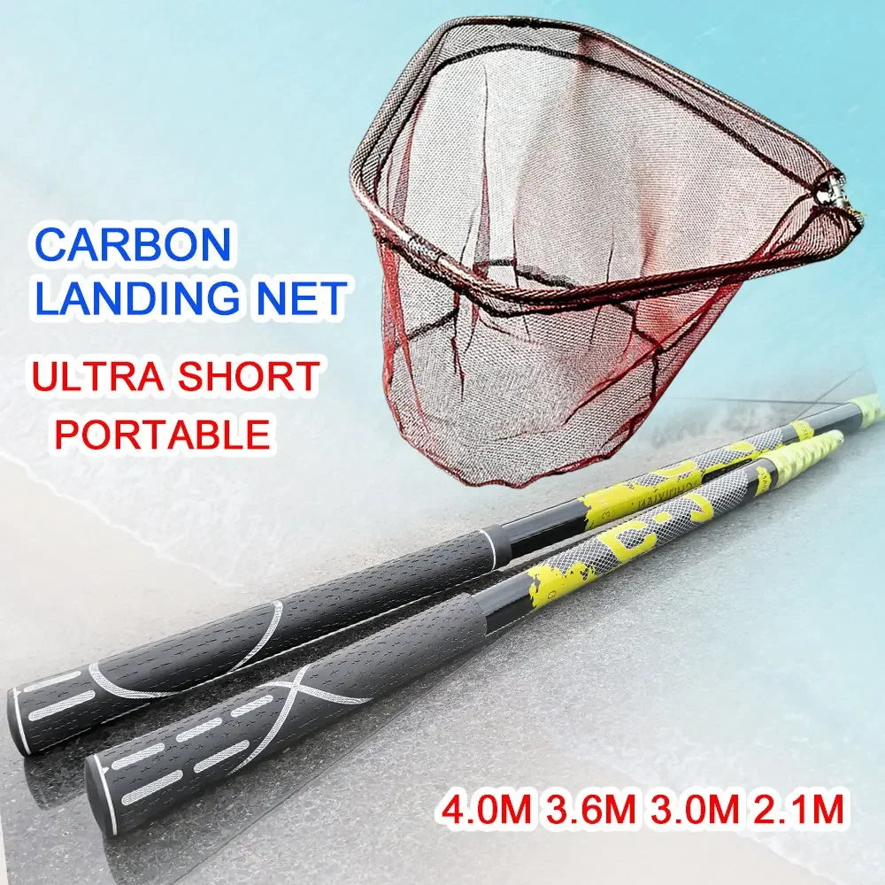 Tamaños de redes de pesca de nailon de carbono, herramientas de pesca plegables, malla de rombos, profundidad de agujero, Red de inmersión de aterrizaje de nailon plegable