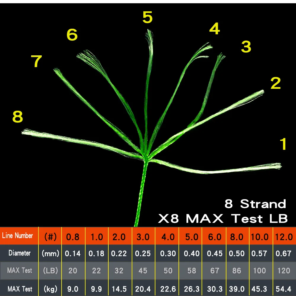 BAKAWA-sedal de Pesca trenzado de 8 hebras, hilo multifilamento para Pesca de carpa, tejido para agua salada, 1000 PE, 500M, 300M, 100% M