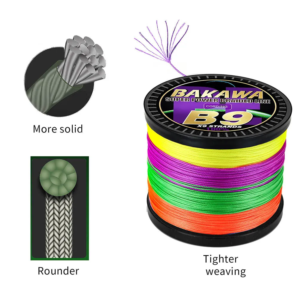 Seleccione materiales de alta calidad de Japón y produzca 9 tejidos a través de la tecnología de tejido más avanzada. Tiene un cuerpo de rosca más apretado, una sección transversal más redonda y una fuerza de tracción más fuerte.