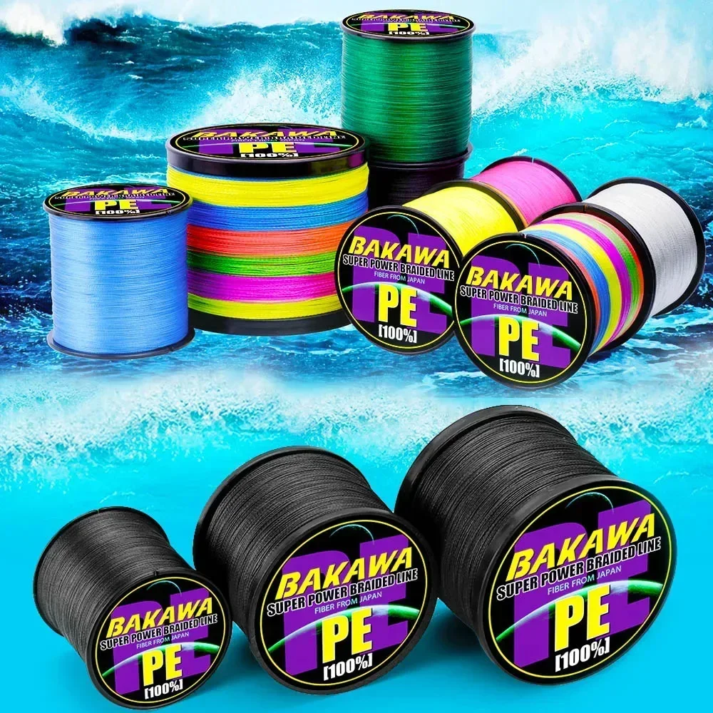 BAKAWA-sedal de Pesca trenzado de PE, 4X hebras, multifilamento japonés, suave, pesca con mosca, carpa, aparejos de Pesca, 300M, 500M, 100M1000M