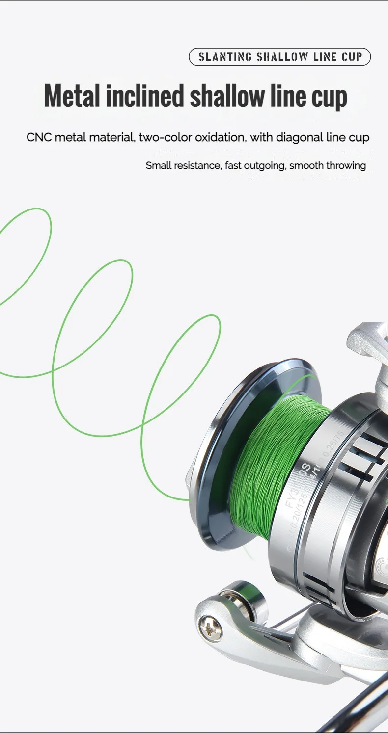 + Carrete poco profundo de metal mecanizado CNC, diseño de labios biselados, garantiza una línea de pesca con mosca suave