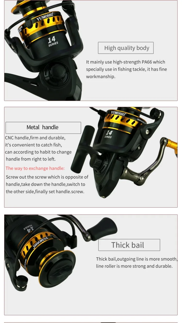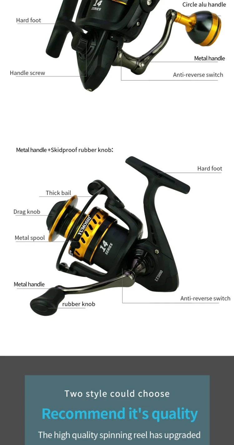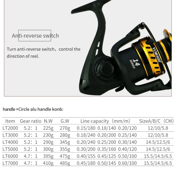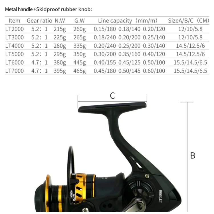 Configuración del Modelo de la LT2000-7000: Copa de alambre de metal, cuerpo principal de plástico, configuración de línea de fundición gruesa, brazo basculante de metal completo, se puede intercambiar brazo basculante izquierda y derecha, película de sonido de metal, placa de engranaje de aleación de zinc, transmisión de varilla de engranaje de cobre. Estilo 1: balancín de metal + apretón de manos de goma dura Estilo 2: balancín de metal + agarre de píldora de metal En esta serie de barcos de pesca, los modelos 2000-3000 son pequeños barcos de pesca, los modelos 4000-5000 son barcos de pesca medianos, y los modelos 6000-7000 son barcos de pesca grandes.
