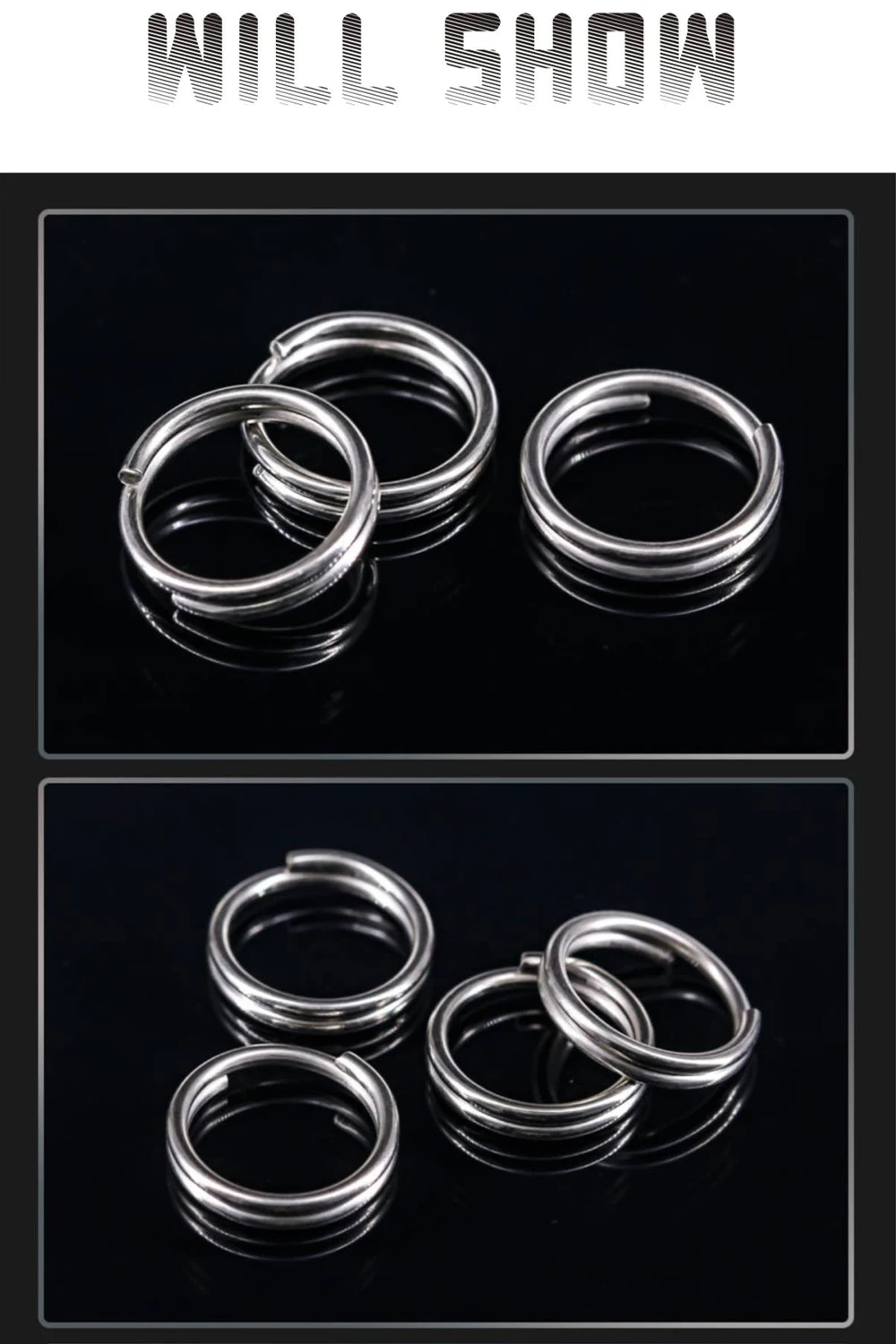 Balanzze-anillos de pesca divididos, aparejos de pesca de acero inoxidable de doble bucle, anillos abiertos divididos, equipo de pesca, 3,5mm-15mm, 50 piezas