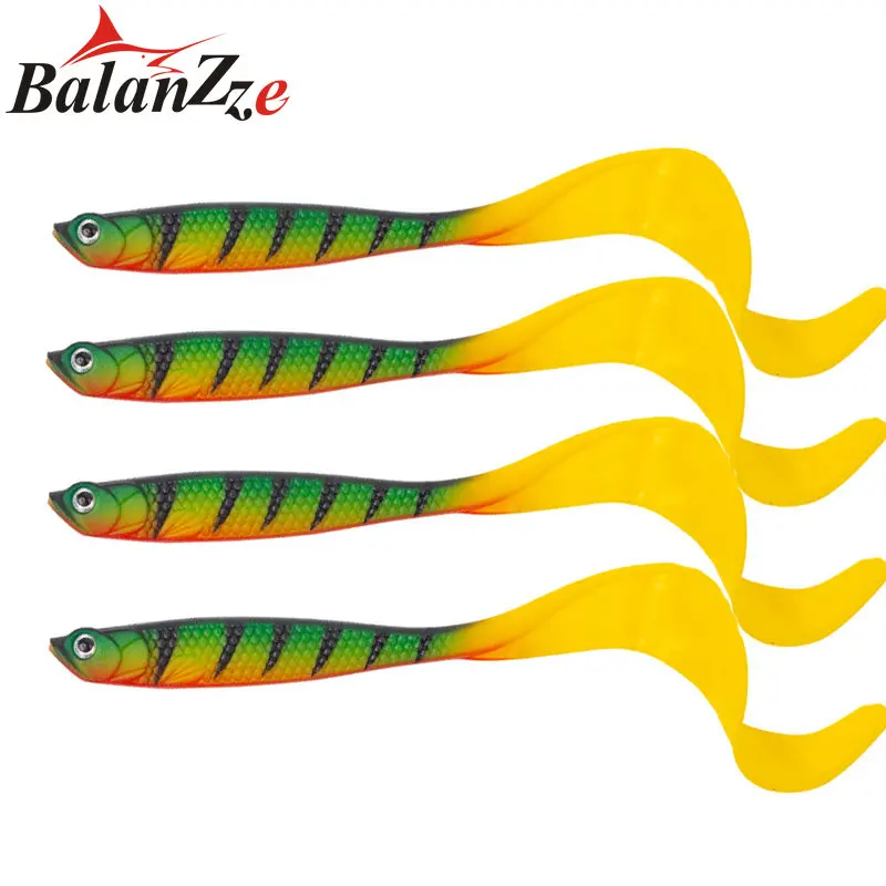 Cebo de goma suave para peces, señuelo de pesca, colas largas verdes, señuelos artificiales de leopardo, agua de mar de agua dulce, 12,5 Cm/6,5G, 4 piezas
