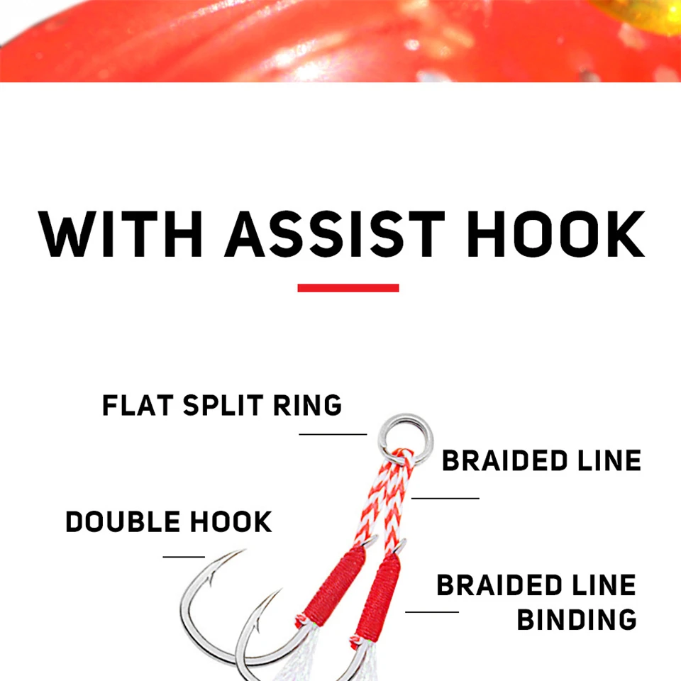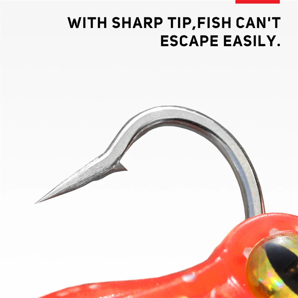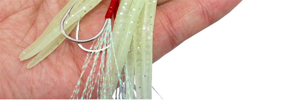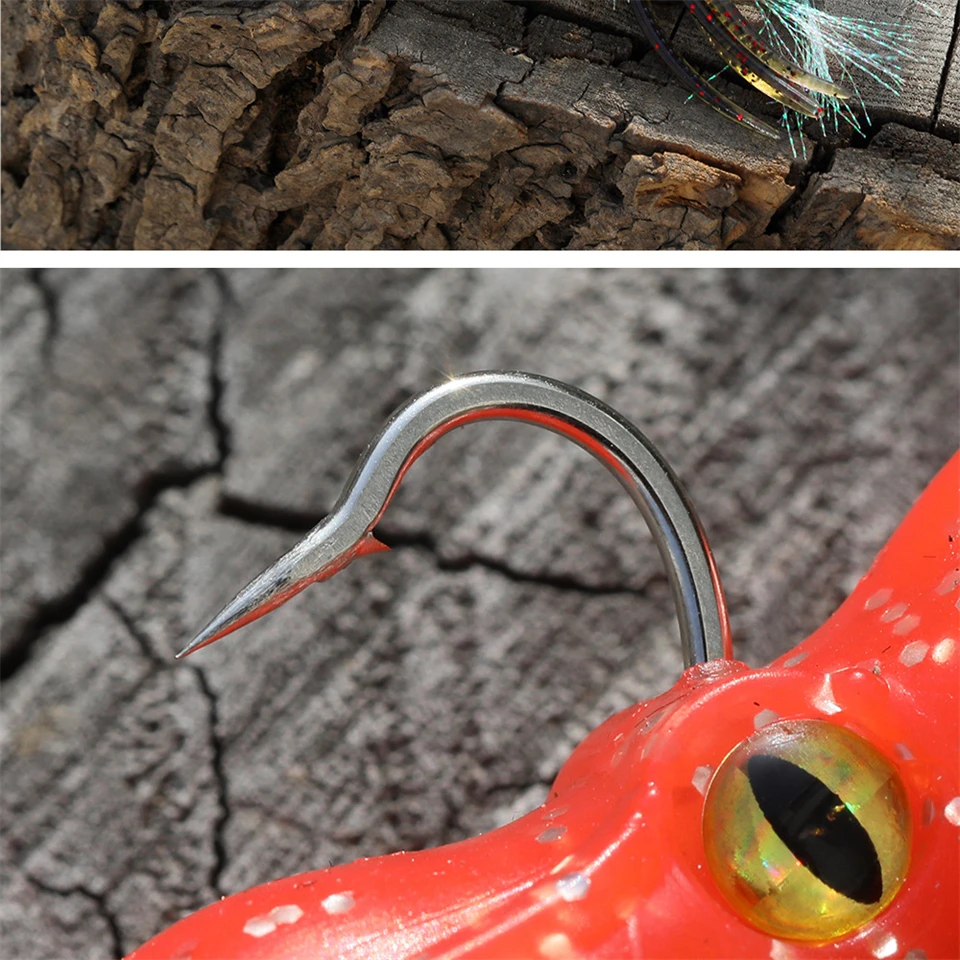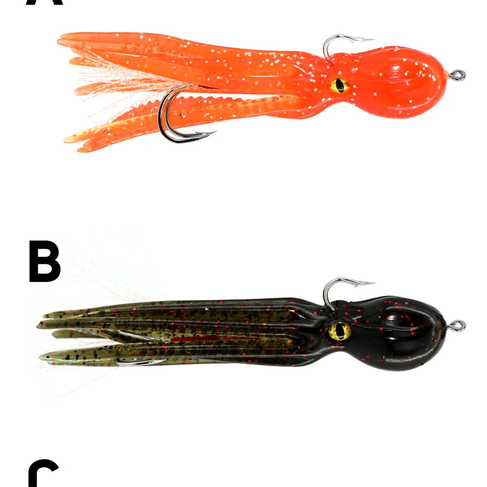 3. Bucles y anzuelos dobles: los anzuelos de púas individuales de alta calidad y los anzuelos triples están conectados a la cabeza para aumentar la tasa de captura de su pez objetivo. El lazo adicional en la parte superior del cebo de pulpo se puede conectar a otro gancho con una cabeza a presión.