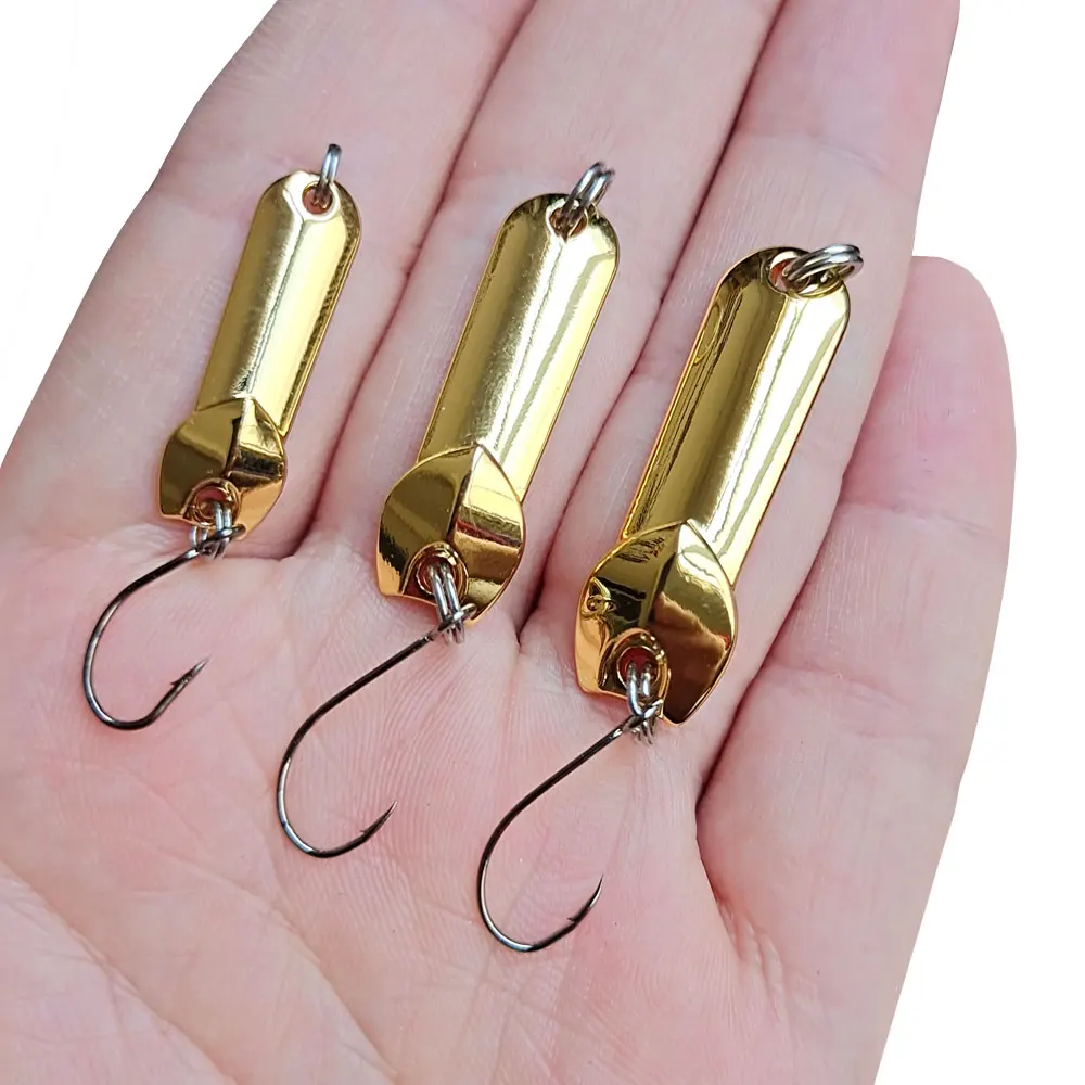 1 Uds. Señuelo de pesca con cuchara de Metal 1,5g2.5g3.5g anzuelo único jig flujo cebos de trucha plata oro Metal lentejuelas aparejos de cebo duro