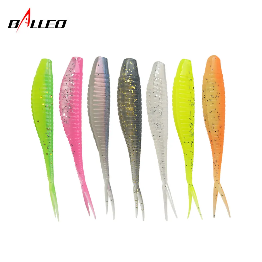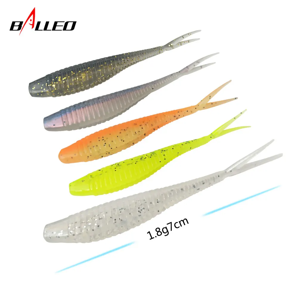 Balleo 10 unids/lote anzuelo de cola de horquilla señuelo suave 7 cm/1,8g señuelo de pesca Shad cebo de silicona alimentador de cebo de plástico suave para pesca de Lucio